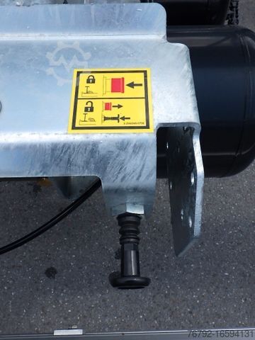 2-axle 18 to Hüffermann sled roll-off trailer "NEW" type HSA 3 / 20.71 ZB "sled carrier" for roll-off container lengths from 5.0 m to max. 7.0 m, SAF axles 2x 10.000 kg air-suspended with automatic lowering when uncoupling the brake, Wabco brake system, ABS, disc brakes with electronic brake and stability system EBS-E and RSS (significant reduction of the risk of the vehicle rolling over, reduced wear of the brake lining), Weight detection/axle load display via EBS-Canbus signal for display in the driver's cab (truck must be prepared accordingly), tire pressure monitoring system in accordance with ECE Directive 141, automatic slack adjusters, certified load securing with 4-fold pneumatic locks, side protection device in anodized and closed design, V-drawbar approx. 2600 mm long, 40 mm eyelet, tool storage box 600 x 500 x 500 mm, tires 265/70 R 19.5 // 8-ply, Hella module lights in part LED, flashing LED side marker lights, additional 2 pcs. LED reversing lights, LED position lights front and rear, folding A-plate and ADR plate, contour markings white at the sides, yellow at the rear, underride guard with bumper and rear skirt, 15-pin power supply, Duomatic coupling head, painted in RAL color DB 7350 nova grey, silver rims, black KTL-coated axles, hot-dip galvanized add-on parts, total weight 18.000 kg, technically possible 20.000 kg, new vehicle, immediately available from stock Bünde, without first registration incl. manufacturer's warranty, sale only to tradesmen ! All information without guarantee ! Subject to errors and prior sale !