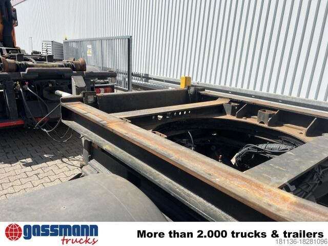 Vehicle location: Bovenden, 2 axles, BPW axles, turntable, air suspension, ABS (anti-lock braking system), container locking system, skid, U-guard, side aluminum underbody protection, twin tires, storage box.