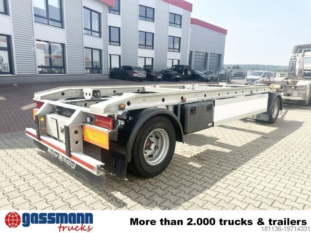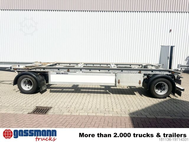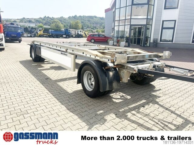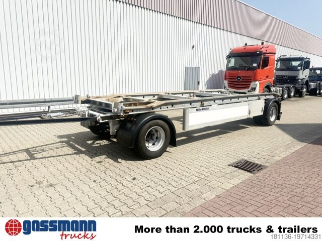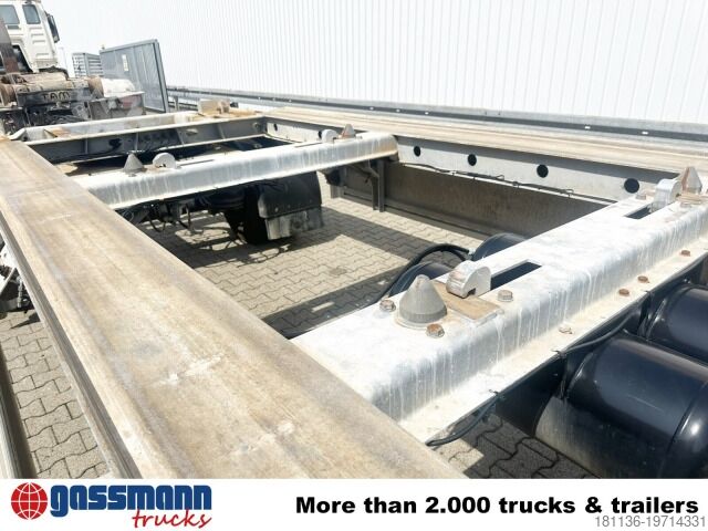 Vehicle location: Bovenden, ABS (anti-lock braking system), storage box, air suspension, 2 axles, SAF axles, turntable, container locking, twin tyres, EBS. Body: Trailer for roll-off containers up to 7m, hot-dip galvanized, SAF 10t axles, disc brakes, pneumatic locking, 40mm drawbar eye. ACCESSORY INFORMATION WITHOUT GUARANTEE, subject to changes, intermediate sale, and errors reserved!