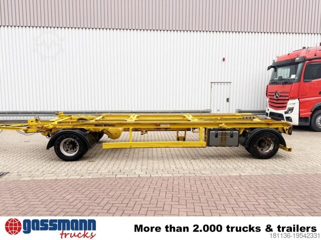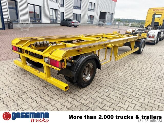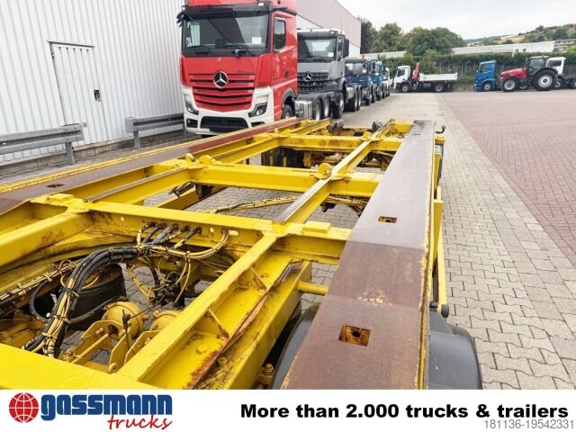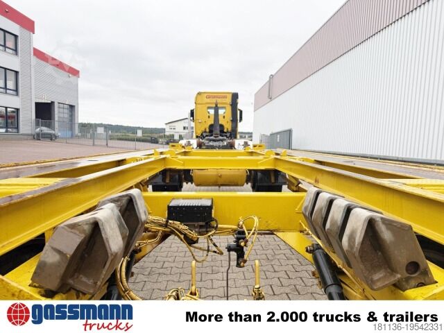 Vehicle location: Bovenden, 2 axles, turntable trailer, air suspension, ABS (anti-lock braking system), container lock, underride protection, side aluminum side guard, twin tires. Body: 2-axle outside-roller trailer for roll-off containers from 5.5 m to 7 m or 2 x 10 m³ skip containers; BPW axles, drum brakes, pneumatic locking, pneumatic drawbar lowering. ACCESSORY SPECIFICATIONS WITHOUT GUARANTEE, subject to change, prior sale, and errors excepted!