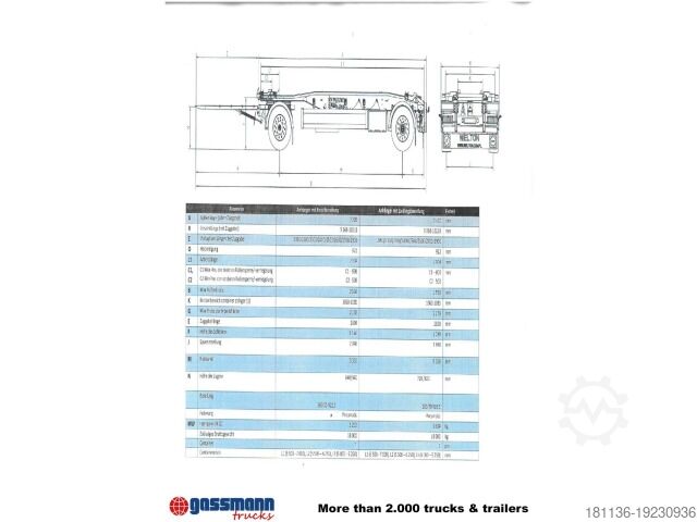 Wheelbase: 5350 mm. Body: Roll-off trailer for containers from 5m to 7m, 2x 9t SAF axles, disc brakes, WITHOUT STORAGE BOX!