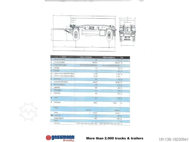 Wheelbase: 5350 mm. Body: Roll-off trailer for containers from 5m to 7m, 2x 9t SAF axles, disc brakes, WITHOUT STORAGE BOX!