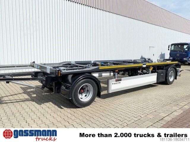 Wheelbase: 5150 mm Body: Trailer for roll-off containers from 5m to 7.25m containers 2x 9t SAF axles, disc brakes, loading bed for container transport with internal length from 7,000mm to 7,250mm, compatible with DIN 30722, pneumatic container lock, mechanical container block, tow bar 2,400mm with rubber buffer, braking system Wabco Duomatik, meets ADR requirement!