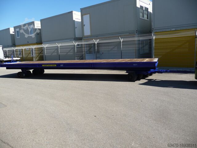 2 управляемые и 2 неуправляемые маятниковые оси, колеса с эластичными шинами из твердой резины примерно 450 x 300 мм, ступицы колес с коническими роликовыми подшипниками и постоянной консистентной смазкой.