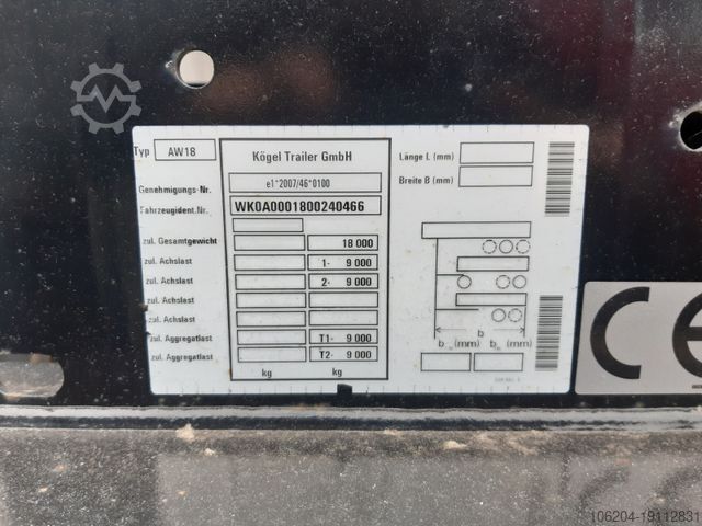 Kögel AW 18 Trailer for Swap Body ----Nutzfahrzeuge Göppl GmbH - Authorized DAF Dealer ---- EZ: April 27, 2020