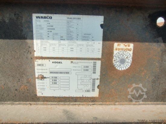 | Kögel AWE 18 drawbar trailer | Spare wheel holder | Disc brake | Tyres: 385/65 R22.5 | Subject to errors and prior sale.