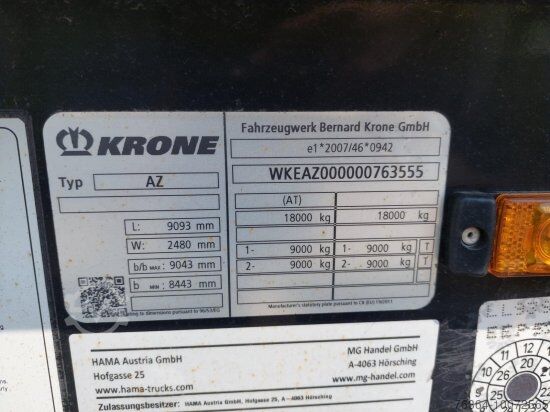 | Krone AZ18 standard carriage | Krone axles with disc brakes | spare wheel holder | tires 385/65R22.5 | Austrian vehicle | Subject to errors, input errors and prior sale.