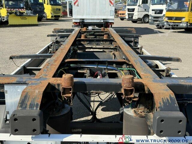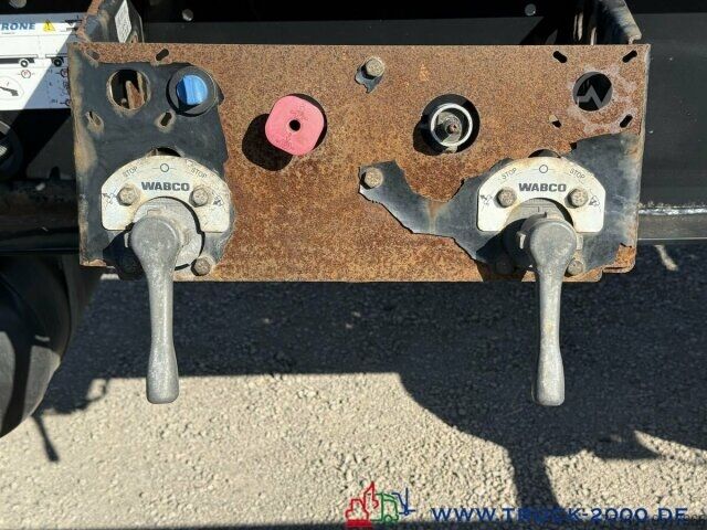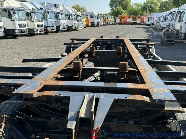German trailer, EBS, BPW axles, air suspension, ABS, trailer from first owner, parking height 1070-1320 mm, Duomatic air connection, spring-loaded parking brake, 2 LED work lights, 2 additional LED reversing lights, 4 container locks on 20" basis, unladen weight 3,100 kg, payload 14,900 kg, wheelbase 1810 mm, Wabco premium brake system, GVW 18,000 kg, drawbar with 50 mm towing eye.