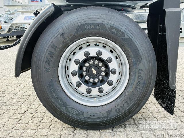 Unladen weight: 2,798 kg, permissible total weight: 18,000 kg, tire size: 385/65 R22.5, 1st axle: , 2nd axle: , air suspension, underride guard, electronic braking system (EBS), toolbox, connection plug 1x15 and 2x7 pin, anti-spray, parking height 1: 1,220 mm, parking height 2: 1,320 mm, driving height: 435 mm. Loading height unladen: 1,250 mm. Drawbar with DIN towing eye, inner diameter 40 mm, outer diameter 110 mm, thickness 30 mm, drawbar dimensions 2000/1300/100/30, draw tube at 6x100 mm. You can find our full range of vehicles at . Interested in financing? With our Value Added Service, we offer you individual financing options, full service, and telematics services. We are happy to advise you.