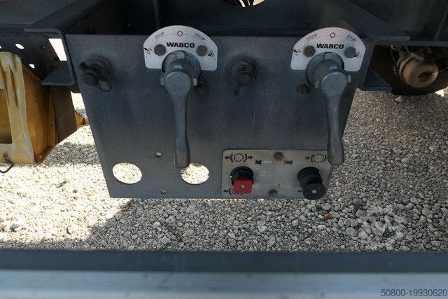 BDF-рама для сменных кузовов длиной 7,15 м и 7,45 м, 20-футовых контейнеров, заднее приспособление для погрузчика-компаньона, тяговое дышло с регулируемой длиной, оцинкованное шасси, ящик для инструментов из нержавеющей стали, ABS, EBS, ось BPW EcoPlus, дисковая тормозная система, пневматическая подвеска с функцией подъема и опускания, транспортное средство может быть оклеено рекламой и/или иметь надписи.