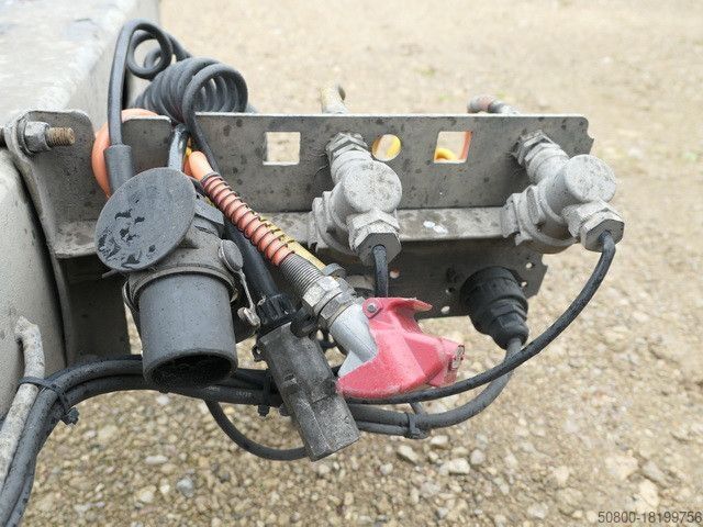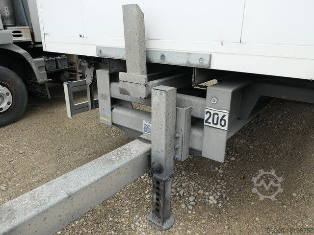 Рама BDF для съемных кузовов, оцинкованная, опорная стойка спереди, 2 складные опоры сзади, буксирная проушина 50 мм, соединительная головка Duo-Matic, ABS, EBS, ось SAF, барабанная тормозная система, пневматическая подвеска с подъемом и устройством опускания, транспортное средство может быть покрыто рекламой и/или иметь маркировку