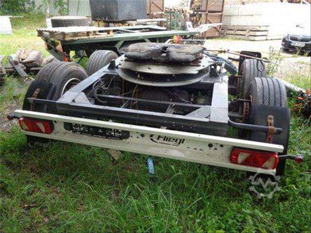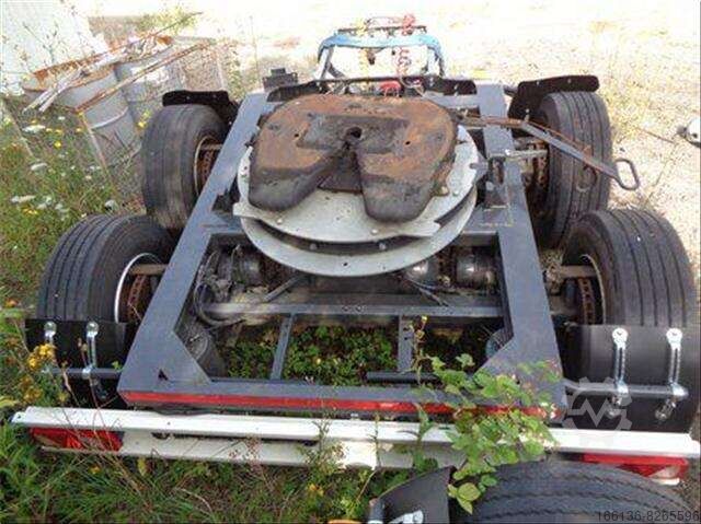 Fine-grained steel welded construction, fifth wheel coupling, make of our choice for 2 kingpins with ball bearing slewing ring, max. 20° stop, telescopic support foot, 2 wheel chocks with holder, steel underride guard, half-shell mudguards