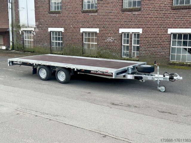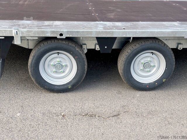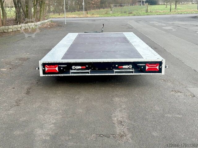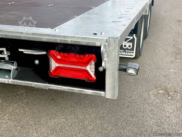 Automatic reverse drive, drive-on ramp, tiltable loading area, hot-dip galvanizing, drive-on ramps / multifunctional trailer / ramp shaft / preparation for tipping function / perforated lashing floor, * IMMEDIATELY AVAILABLE * Drive-on ramps / multifunctional trailer / ramp shaft / preparation for tipping function / perforated lashing floor TECHNICAL DATA - Make: Brian James - Model: Connect 476 - Vehicle type: High loader - Vehicle condition: New vehicle - Initial registration: Without initial registration - TÜV/HU: 2 years from initial registration - Internal dimensions (LxWxH): 450 x 213 x 0 cm - External dimensions (LxWxH): 620 x 215 x 80 cm - Loading height of floor: 65 cm - Perm. Total weight: 3,500 kg - Unladen weight: 834 kg - Payload: 2,666 kg - Chassis: High loader (wheels under the body) - Tyres: 195/60R12C - Chassis: ALKO rubber suspension axle - Support wheel: Yes - 100 km/h approval: Optional, can be retrofitted DESCRIPTION - Most adaptable multifunctional trailer for commercial goods and vehicle transport of all kinds. - Every available option can be flexibly attached or detached and thus enables customization for almost any application - Perforated steel lashing floor in combination with 18 mm multiplex floor offers high slip resistance and is extremely wear-resistant, even under the toughest operating conditions. - Can be plugged in at all 4 corners for drop sides, tarpaulin frames, drop side attachments or front wall elevation - Vehicle can also be fitted with all options after purchase: enormous potential for retrofitting: hydraulic tipping functions, winches, ramps etc. can be retrofitted at any time. can be retrofitted at any time - very sturdy welded steel frame - contact edge for drive-on ramps can be moved for different track widths - numerous lashing points punched directly into the frame enable professional load securing - integrated ramp shafts - high-quality perforated steel ramps, galvanized, L=2.35m, the pair - side panels color: black - frame cpl. Sturdy net hooks under the loading area - Spare wheel mounted on the drawbar for easy access - Automatic reverse - ALKO overrun device and parking brake - Cast steel coupling head with integrated ALKO high-security lock - Very stable V-drawbar REINFORCED - 13-pin plug - Reversing lights - Large LED safety lighting - Complete LED lighting: Extremely bright, durable and reliable. - dynamic LED indicators are clearly visible even in bad weather - robust protection for the rear lights - integrated rear fog light - various front, side and rear marker lights - heavy-duty support wheel - 5-year chassis warranty Accessories can be retrofitted - please enquire! - Tipping function - Storage box - Drop sides - Winches - Attachments New vehicle with warranty and TÜV. We are happy to offer you suitable financing !, Descriptions and pictures are protected by copyright !!! Over 800 trailers immediately available for you! We are for over 30 years Brian James / Humbaur / Hapert / Unsinn / Cheval Liberte / Koch / Debon / Stedele / TPV / Tohaco / Vezeko / Variant / Vlemmix - specialized dealer & repair - workshop - delivery Germany-wide with surcharge possible! Anhänger Zentrum BAUMANN GmbH Dinxperloer Str. 389 46399 Bocholt - Errors, omissions and prior sale excepted -