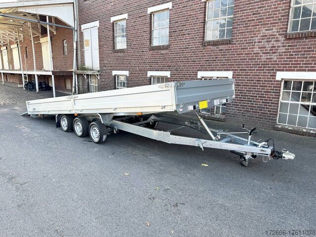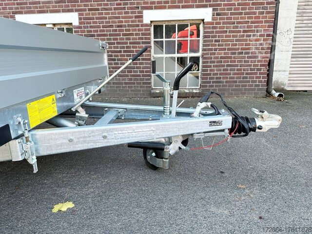 Automatic reverse drive, 18 mm floor plate / parabolic suspension / drive-on ramp / tiltable, hot-dip galvanized, * IMMEDIATELY AVAILABLE * incl. 18 mm floor plate / parabolic suspension / drive-on ramp / tiltable Technical data: - Type: New vehicle - TÜV: New/2 years - Availability: IMMEDIATELY - Gross vehicle weight: 3,500 kg - Unladen weight: 1,164 kg - Payload: 2.336 kg - Interior dimensions: 620 x 210 x 30 cm (L x W x H) - Overall exterior dimensions: 773 x 220 x 159 cm (LxWxH) - Loading sill height: 63 cm - Tires: 195/50R13C - Brakes: yes - Support wheel: yes, automatic - 100km/h: optional - Incl. Vehicle documents Vehicle superstructure: - Floor: 18mm screen printing plate - Side walls: double-walled aluminum - Side wall height: 30cm - Chassis: KNOTT parabolic suspension - Tipping function: YES - Hydraulics: manual hydraulics - Drive-on angle: approx. 10 - Overrun device & brake: KNOTT - Frame/chassis: welded hot-dip galvanized steel frame - Attachment: no - Lashing eyes: 10 on the side edge - Supports: when tipping through the rear - Ramps: 1x upright on shaft 90cm - Lighting plug: 13-pin - Approval: ZBII & COC papers Standard equipment: - Parabolic spring axle (leaf spring suspension) for extreme loads and driving comfort - Folding aluminium drop sides - Welded drop side/frame construction made of sheet steel, hot-dip galvanized - Very stable bolted V-drawbar REINFORCED - Drop sides 30cm high - Hot-dip galvanized steel ramp, upright - Very stable welded steel frame - Frame cpl. hot-dip galvanized frame - rubber spring axle - many sturdy cross beams for high point loading - lashing rings mounted in the outer frame 10 pieces (5 pairs) - automatic reversing - KNOTT overrun device and parking brake - sturdy locks for ramps - 13-pin plug - reversing lights - large rear lights plug - reversing lights - large safety lighting - integrated rear fog light - lighting recessed in rear frame - rear side position lights - automatic center support wheel - registration papers: ZBII & COC papers Accessories can be retrofitted - please enquire: - 100km/h approval - spare wheel - storage box - net hooks - additional lashing eyes - reversing lights - lashing straps - and much more. New vehicle with warranty and TÜV. We are happy to offer you suitable financing !, Descriptions and pictures are protected by copyright !!! Over 800 trailers immediately available for you! We are for over 30 years Brian James / Humbaur / Hapert / Unsinn / Cheval Liberte / Koch / Debon / Stedele / TPV / Tohaco / Vezeko / Variant / Vlemmix - specialized dealer & repair - workshop - delivery Germany-wide with surcharge possible! Anhänger Zentrum BAUMANN GmbH Dinxperloer Str. 389 46399 Bocholt - Errors, omissions and prior sale excepted -
