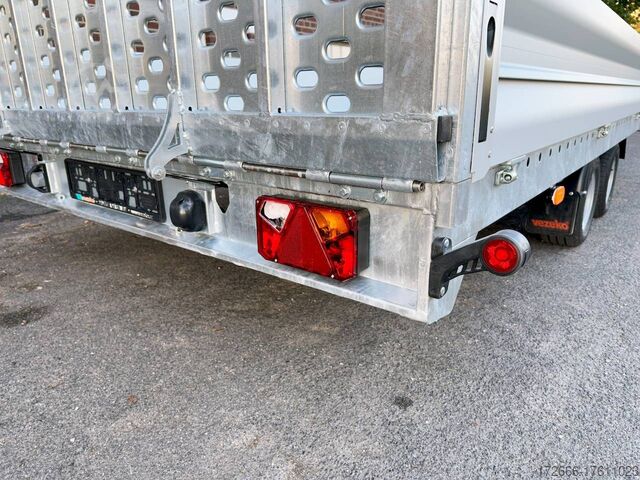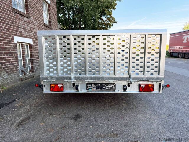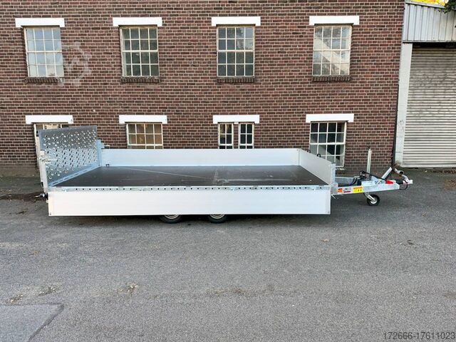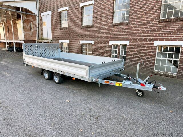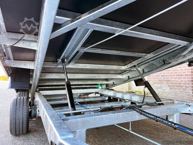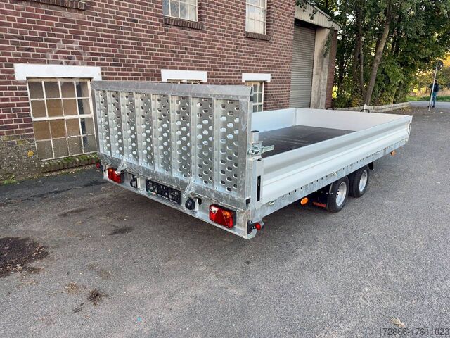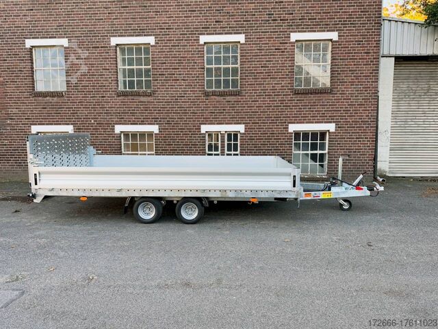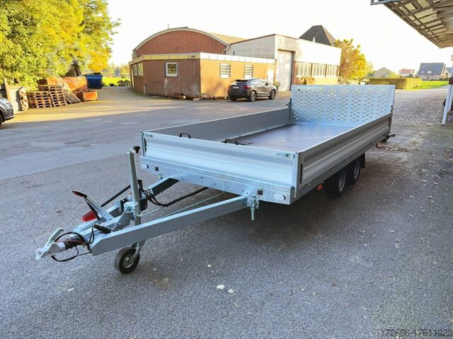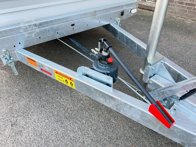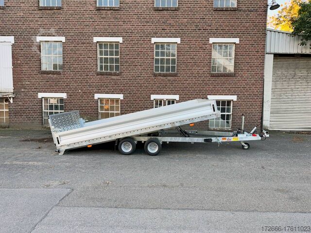 Hydraulics, automatic reverse drive, steel ramp 85cm, tiltable loading area, hot-dip galvanizing, aluminium side walls 30cm, * IMMEDIATELY AVAILABLE * incl. aluminium side walls 30cm / tiltable loading area / steel ramp 85cm Technical data: - Type: New vehicle - TÜV: New/2 years - Availability: IMMEDIATELY! - Gross vehicle weight: 3,000kg - Unladen weight: 854 kg - Payload: 2,146 kg - Interior dimensions: 430 x 210 x 35 cm (L x W x H) - Overall exterior dimensions: 617 x 216 x 148 cm (LxWxH) - Loading sill height: 61 cm - Tires: 195/55R10C steel rim - Brake: yes - Support wheel: yes, automatic - 100km/h: at an extra charge - incl. Vehicle documents Vehicle superstructure: - Floor: Multiplex wooden floor - Drop sides: Aluminium drop sides - Drop side height: 35cm - Chassis: High loader, ALKO rubber spring axle - Tipping function: yes - Hydraulics: Manual hydraulics - Drive-on angle: approx. 13 - Wheel stopper: optional - Overrun device & brake: ALKO - Frame/chassis: Welded hot-dip galvanized steel frame - Lashing eyes: 10 pieces in the floor (750kg/pc) - Winch: Optional - Supports: Support at the rear - Ramps: Steel ramp at the rear approx. 85cm foldable - Plug lighting: 13-pin - Approval: COC papers Standard equipment: - Multiplex floor - Extremely robust - Preparation for wheel stopper bar - Very stable welded steel frame - Tiltable loading area by means of double-acting hand hydraulics + 2 lifting cylinders - Loading area can also be pumped down and not only via pressure release - Frame cpl. frame completely hot-dip galvanized - many stable cross beams therefore high point load - additional longitudinal struts continuously welded in - 10 lashing eyes inside the loading area, rubber-coated (750kg/each) - automatic reverse drive - ALKO overrun device and parking brake - ALKO coupling head - very stable V-drawbar REINFORCED - 13-pin plug - reversing lights - large reversing lights plug - reversing light - large dimensioned safety lighting - integrated rear fog light - swivel lighting - automatic support wheel in the middle - registration papers: COC papers Accessories can be retrofitted - please enquire: - 100 km/h approval with shock absorbers - aluminum checker plate mounted on the floor - winches (manual winch or electric winch) - anti-theft device - tarpaulin body - wheel stopper - storage box - additional lashing eyes - reversing light - lashing straps - and much more. New vehicle with warranty and TÜV. We are happy to offer you suitable financing !, Descriptions and pictures are protected by copyright !!! Over 800 trailers immediately available for you! We are for over 30 years Brian James / Humbaur / Hapert / Unsinn / Cheval Liberte / Koch / Debon / Stedele / TPV / Tohaco / Vezeko / Variant / Vlemmix - specialized dealer & repair - workshop - delivery Germany-wide with surcharge possible! Anhänger Zentrum BAUMANN GmbH Dinxperloer Str. 389 46399 Bocholt - Errors, omissions and prior sale excepted -