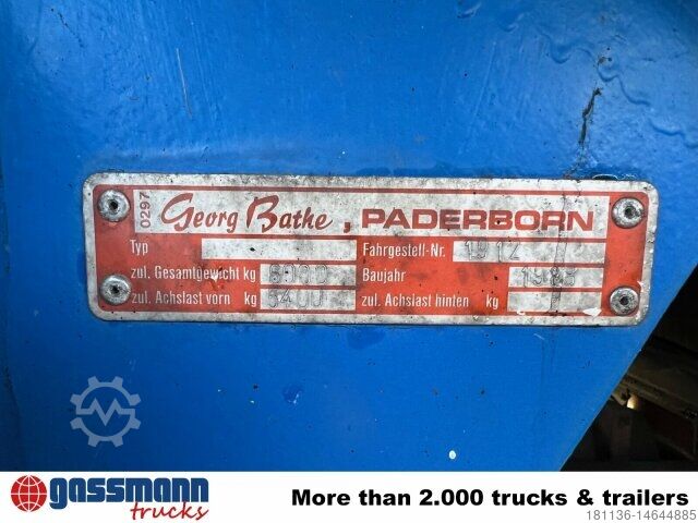 Vehicle location: Bovenden, 2 axles, BPW axles, tandem, underrun protection, front support. Body: Asphalt cooker approx. 4000 l, tandem trailer with Hatz engine, 2x BPW axles, drum brakes, torsion bar suspension! The trailer was registered as a self-propelled work machine with a green license plate! ACCESSORY DETAILS WITHOUT GUARANTEE, subject to changes, prior sale and errors!