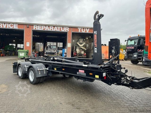 ----Body: Container trailer with Hiab XR 14S53 roll-off tipping body for approx. 4.5–6.5 m container length, 14,000 kg lifting capacity, push arm, hydraulic container locking system, hydraulically extendable rear underrun protection.