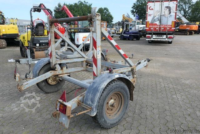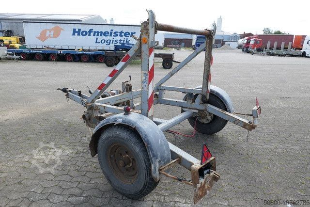 Прицеп для транспортировки кабельных барабанов, оцинкованный, ручная лебёдка с тросом, два эксцентриковых замка, регулируемая по высоте дышло, инерционный тормоз, ручной тормоз, опорное колесо, транспортное средство может быть оклеено рекламой и/или иметь надписи.