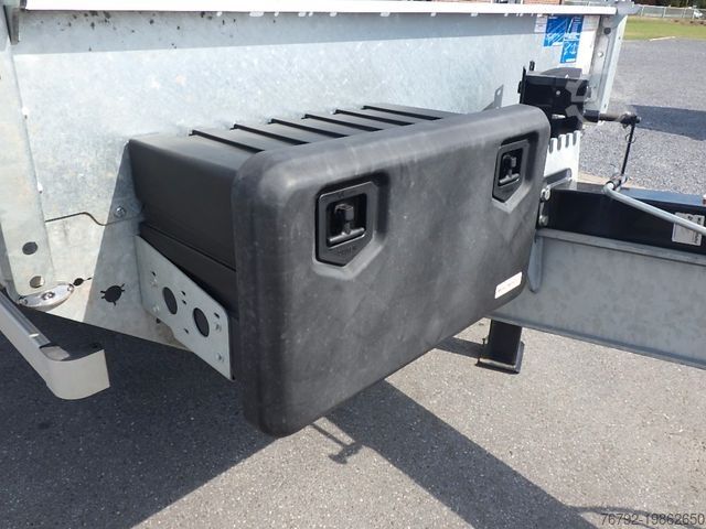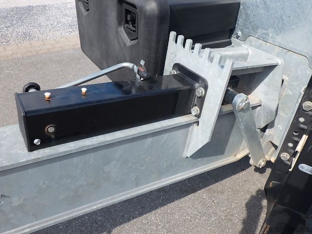 2-axle Müller-Mitteltal Type ETÜ-TA-R 14.4 tandem low-bed trailer with loading ramps. Platform loading dimensions (internal): 6270 x 2470 mm, loading height approx. 950 mm. Equipped with pins and locks for sideboards, plastic tool box in front of the front wall on the right, 4 lashing rings in the corners on the loading platform, Multilock outer frame offering universal cargo securing options, pre-fitted with mounts for retrofitting 2 container locks (twistlocks) in front of the bulkhead. 5 pairs of lashing brackets on the outer frame, spring-assisted loading ramps approx. 2650 mm long and 600 mm wide, Gigant axles 2x 7000 kg with tapered roller bearings and cam brakes, parabolic suspension with balancing unit, ABS, drum brakes with EBS, drawbar with 40 mm towing eye and height adjustment, Jost geared landing leg at the front, rear support with 2 drop-down supports at the rear. Tires: 235/75 R 17.5. Gross vehicle weight 14,400 kg / payload 10,770 kg. Single owner, in as-new overall condition. Sale to commercial customers only! All information is provided without guarantee! Subject to errors and prior sale!