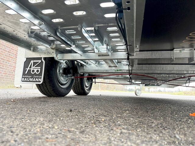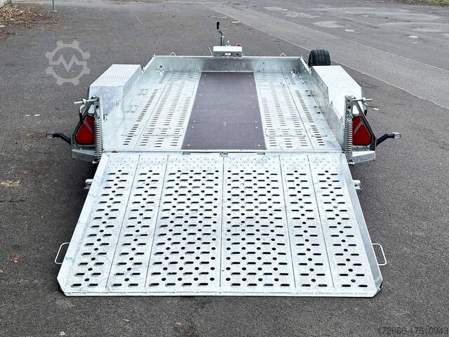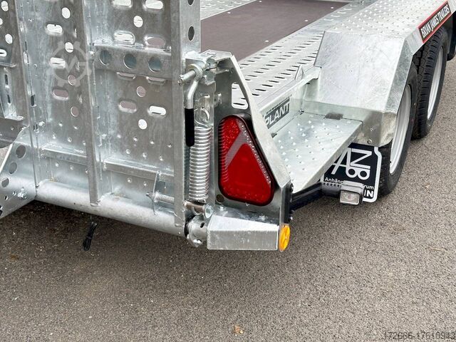 Automatic reverse drive, hot-dip galvanizing, extremely sturdy superstructure, perforated lashing floor, LED lighting, e-wheel, bucket storage, * IMMEDIATELY AVAILABLE * extremely sturdy superstructure / perforated lashing floor / LED lighting / e-wheel / bucket storage TECHNICAL DATA - Make: Brian James - Model: Digger Plant 2 - Vehicle type: Construction machinery - Vehicle condition: New vehicle - Initial registration: Without initial registration - TÜV/HU: 2 years from initial registration - Internal dimensions (LxWxH): 280 x 130 x 20 cm - External dimensions (LxWxH): 465 x 179 x 197 cm - Loading height of floor: 38 cm - Perm. Gross weight: 3,500 kg - Unladen weight: 614 kg - Payload: 2.886 kg - Chassis: Low loader (wheels next to the body) - Tyres: 165R13C - Chassis: ALKO rubber spring axle - Support wheel: Yes - 100 km/h approval: Optional, can be retrofitted DESCRIPTION - Robust steel mudguards with non-slip perforated profile - Reinforced perforated steel floor inside on the side - 18 mm screen-printed wooden floor in the middle, non-slip and waterproof - Very sturdy welded steel frame - Frame completely hot-dip galvanized - Chassis: Steel frame with anti-slip profile hot-dip galvanized - chassis with two additional longitudinal beams under the loading area - perforated steel single ramps, galvanized steel, adjustable, L=1.62m - stable ACME locking system: closes silently, loading ramps are held in place by safety clamp locks, Rubber buffer dampens noise - Very low chassis for low drive-on angle - Excavator bucket storage - 10x lashing eyelets on the dropside (1000dAN/kg) TÜV certified - Free choice of lashing points for lashing in the perforated steel floor - Maintenance-free axles and damping systems designed for long journeys and heavy loads - Spare wheel mounted on the side wall for easy access - Automatic reverse drive - ALKO overrun device and parking brake - Cast steel coupling head with integrated ALKO high-security lock - Very sturdy V-drawbar RENFORCED - 13-pin plug - Complete LED lighting system Plug - Complete LED lighting: Extremely bright, durable and reliable. - Reversing lights - Integrated rear fog light - Robust protection for rear lights - Heavy-duty support wheel - 5-year chassis warranty Accessories can be retrofitted - please enquire! - TracStrap load securing system - excavator bucket cage - lashing straps - storage box - winch - and much more New vehicle with warranty and TÜV. We are happy to offer you suitable financing !, Descriptions and pictures are protected by copyright !!! Over 800 trailers immediately available for you! We are for over 30 years Brian James / Humbaur / Hapert / Unsinn / Cheval Liberte / Koch / Debon / Stedele / TPV / Tohaco / Vezeko / Variant / Vlemmix - specialized dealer & repair - workshop - delivery Germany-wide with surcharge possible! Anhänger Zentrum BAUMANN GmbH Dinxperloer Str. 389 46399 Bocholt - Errors, omissions and prior sale excepted -