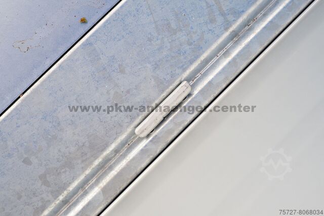 The *car trailer* is equipped with *aluminium* drop sides* *all sides foldable and removable, *steel on wooden floor*, *e-hydraulics* with battery, *rail shaft*, *automatic support wheel*, *high frame*, *lashing eyes*, welded *hot-dip galvanized frame* and a *V-drawbar*.