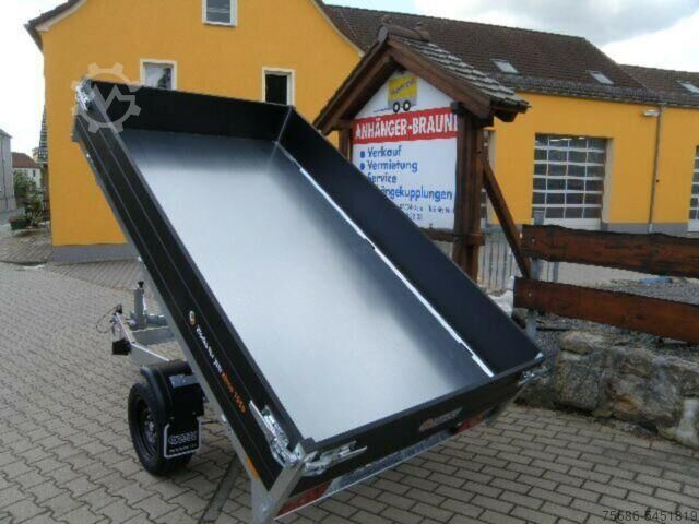 New rear tipper series! Braked rear tipper, single-axle high loader with aluminum drop sides, foldable and removable on all sides, wooden floor covered with steel sheet, lashing rings mounted laterally in a V-groove in the floor plate, highly robust hot-dip galvanized and welded steel frame, hydraulic manual operation, 13-pin electrical system, automatic jockey wheel. Plus freight to Gera and vehicle registration certificate 200 € net. Optional accessories available at extra cost: H-frame, leaf mesh sides, tarpaulin and bows of 160 cm height, flat tarpaulin, equipment for 100 km/h road approval, etc. Financing and leasing options available. Delivery possible for an additional charge.