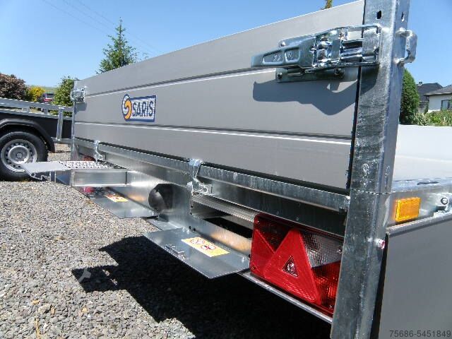 New series rear tipper! Tandem axle, braked rear tipper high-loader with aluminium drop sides, foldable and removable on all sides. Wooden floor with steel plate covering, welded, hot-dip galvanized steel frame, automatic jockey wheel, 6 lashing rings laterally in a V-groove, hydraulic hand pump, 13-pin electrical system, low-frame chassis.