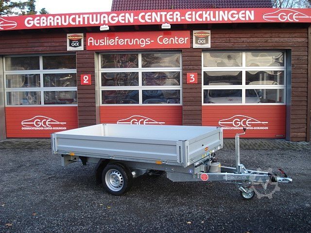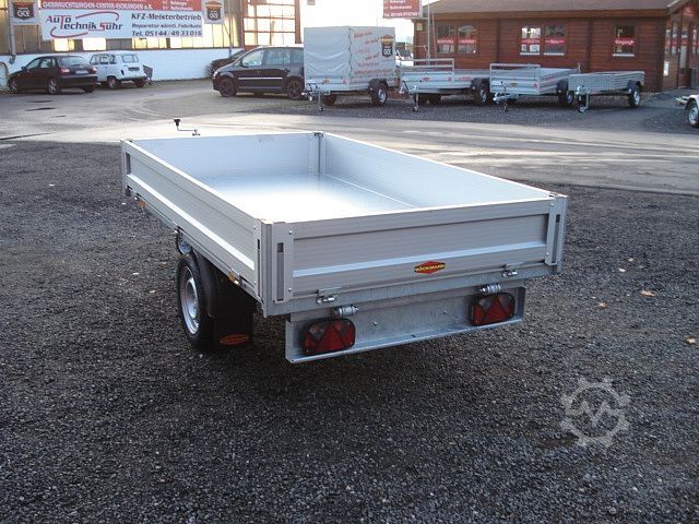 QUALITY FROM GERMANY! PAYLOAD 1,015 KG! Equipment: Aluminum side walls that can be opened and removed on all sides, sheet steel floor, 13-pin plug, wheel chocks, V-drawbar