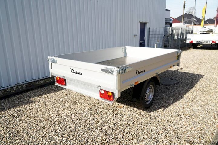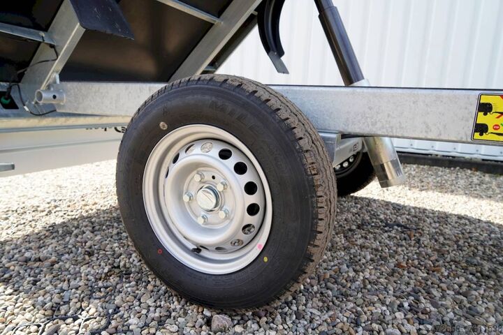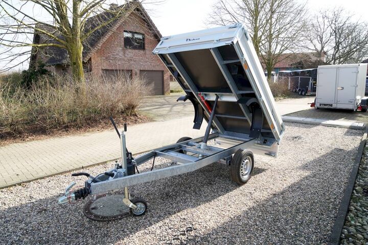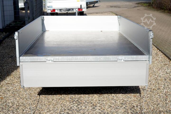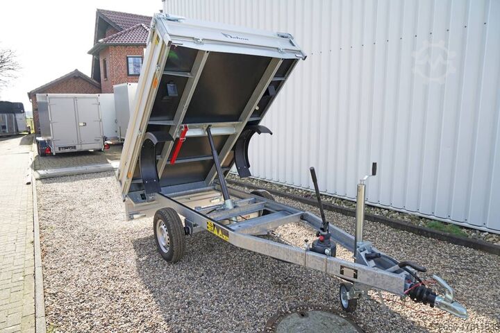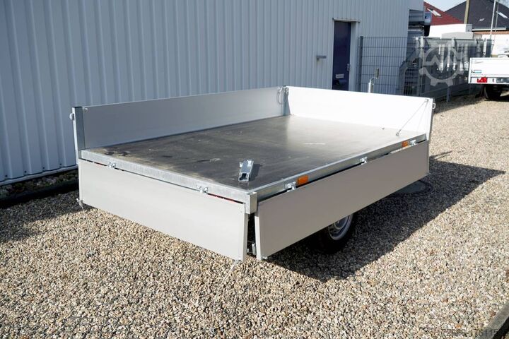 Manual hydraulics, automatic reverse drive, hot-dip galvanizing, roof window, * IMMEDIATELY AVAILABLE * incl.. Manual hydraulics Technical data: - Type: New vehicle - TÜV: New/2 years - Availability: IMMEDIATELY! - Gross vehicle weight: 1,500 kg - Unladen weight: 430 kg - Payload: 1,070 kg - Interior dimensions: 250 x 160 x 30 cm (L x W x H) - Overall exterior dimensions: 383 x 167 x 102 cm (L x W x H) - Loading sill height: 72 cm - Tires: 185/70 R13C steel rim - Brake: yes - Support wheel: yes - Automatic - 100 km/h: at extra charge - incl. vehicle documents Vehicle superstructure: - Floor: Wood, Finnish multiplex board - Side walls: Anodized aluminium, double-walled, 4x folding & removable - Side wall height: 30cm - Chassis: High loader, KNOTT rubber spring axle - Tipping function: Yes, rearward - Hydraulics: Manual hydraulic tipping - Tipping angle: approx. 45 - Hydraulic cylinder steps: 3 steps - Overrun device & brake: KNOTT - Frame/chassis: Welded hot-dip galvanized steel frame - Attachment: optional - Lashing eyes: optional - Supports: at extra charge - Ramps: at extra charge Ramps: at extra charge - Lighting plug: 13-pin - Approval: COC papers Standard equipment: - Anodized double-walled aluminium drop sides - Side and rear drop sides foldable - Removable drop sides - Finnish-quality wooden floor - Hand pump for tipping function - Sturdy welded steel frame - Frame completely hot-dip galvanized - Maintenance-free hot-dip galvanized - maintenance-free rubber spring axles - automatic reverse drive - overrun device and parking brake - eccentric locks - sturdy V-drawbar - 13-pin plug - reversing lights - large rear lights plug - reversing lights - generously dimensioned safety lighting - integrated rear fog light - lighting recessed in rear frame - automatic center support wheel - registration papers: COC papers Accessories can be retrofitted - please enquire: - High grille for front or rear - 100km/h approval with shock absorbers - Side wall attachment - Corrugated grille attachment 60cm - Spare wheel - Storage box - Battery - Charger 230V - Load securing net - Anti-theft device with discus lock - Rear supports - Ramps - Flat tarpaulin - Net hooks - Lashing straps - and much more. New vehicle with warranty and TÜV. We are happy to offer you suitable financing !, Descriptions and pictures are protected by copyright !!! Over 800 trailers immediately available for you! We are for over 30 years Brian James / Humbaur / Hapert / Unsinn / Cheval Liberte / Koch / Debon / Stedele / TPV / Tohaco / Vezeko / Variant / Vlemmix - specialized dealer & repair - workshop - delivery Germany-wide with surcharge possible! Anhänger Zentrum BAUMANN GmbH Dinxperloer Str. 389 46399 Bocholt - Errors, omissions and prior sale excepted -
