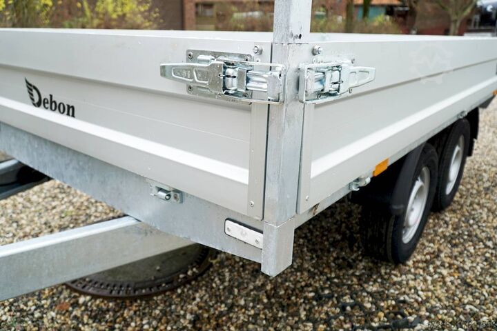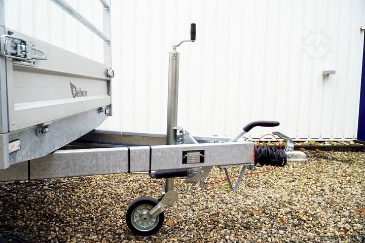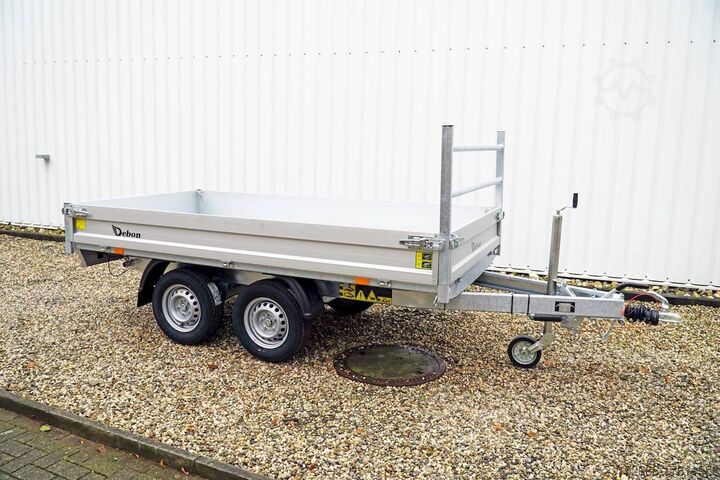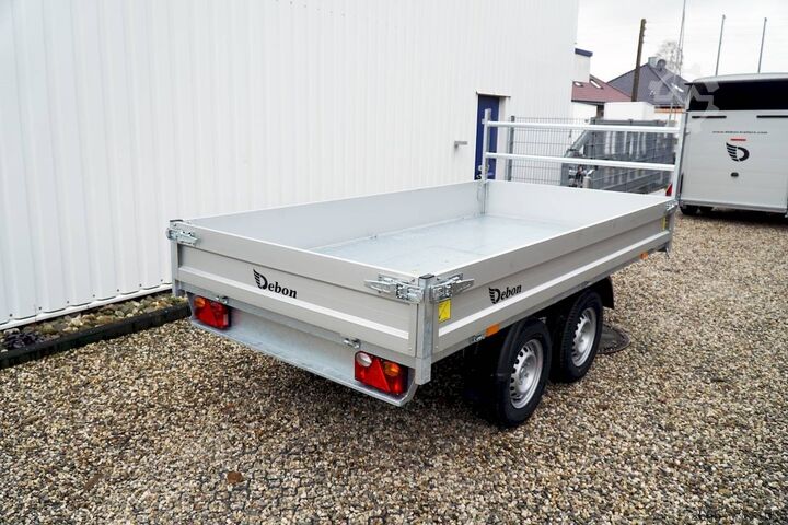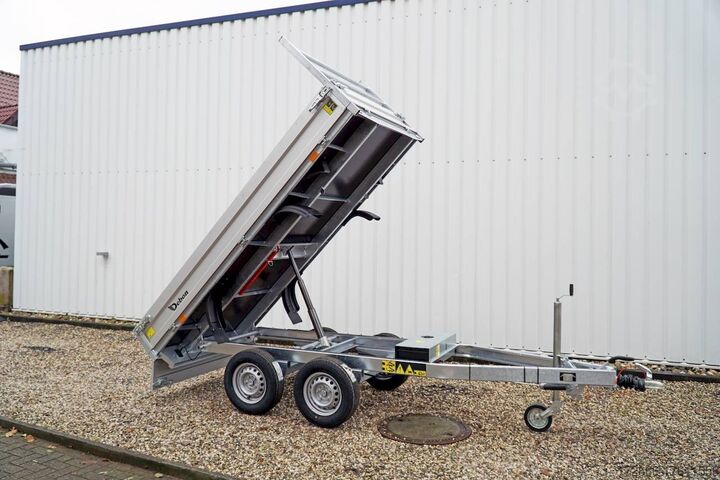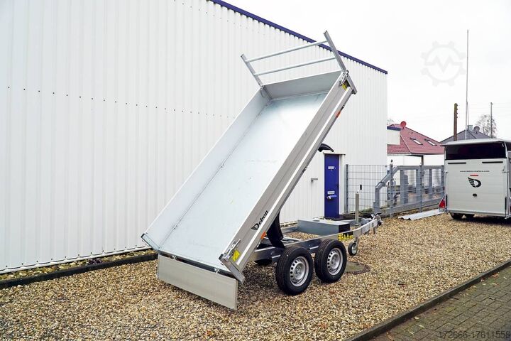 E-hydraulics / high front grille, automatic reverse drive, hot-dip galvanizing, roof window, * IMMEDIATELY AVAILABLE * incl. E-hydraulics / high front grille Technical data: - Type: New vehicle - TÜV: New/2 years - Availability: IMMEDIATELY! - Gross vehicle weight: 2,000 kg - Unladen weight: 660 kg - Payload: 1,340 kg - Interior dimensions: 306 x 155 x 30 cm (L x W x H) - Overall exterior dimensions: 436 x 167 x 102 cm (L x W x H) - Loading sill height: 72 cm - Tyres: 185/70R13 steel rim - Brake: yes - Support wheel: yes - Automatic - 100 km/h: at extra charge - incl. vehicle documents Vehicle documents Vehicle superstructure: - Floor: sheet steel on wood, Finnish multiplex board - Side walls: anodized aluminium double-walled, 4x foldable & removable - Side wall height: 30cm - Chassis: high loader, KNOTT rubber spring axle - Tipping function: yes, reverse - Hydraulics: electrically tiltable - Tipping angle: approx. 45 - Steps hydraulic cylinder: 3 steps - Overrun device & brake: KNOTT - Frame/chassis: Welded hot-dip galvanized steel frame - Attachment: Yes, removable high grille at the front - Lashing eyes: 6 in the floor - Supports: at extra charge - Ramps: at extra charge Standard equipment: - Anodized double-walled aluminium drop sides - Side and rear drop sides foldable - Drop sides removable - Steel plate on wooden floor in Finnish quality - H-frame removable at the front - E-hydraulics with battery - Sturdy welded steel frame - Frame compl. hot-dip galvanized - many sturdy cross beams therefore high point load - maintenance-free rubber spring axles - automatic reverse - overrun device and parking brake - 6 lashing brackets inside the side edge - eccentric locks - sturdy V-drawbar - 13-pin plug - reversing lights - large rear lights plug - reversing lights - large safety lighting - integrated rear fog light - lighting recessed in rear frame - automatic center support wheel - registration papers: COC papers Accessories can be retrofitted - please enquire: - 100km/h approval with shock absorbers - emergency hand pump - side wall attachment - corrugated grid attachment 60cm - spare wheel - storage box - battery - charger 230V - rear supports - ramps - flat tarpaulin - net hooks - additional lashing eyes - slotted-hole rails for tension belts & locking beams - bar strip with rubber coating for tension belts & locking beams - reversing lights - lashing straps - and much more. New vehicle with warranty and TÜV. We are happy to offer you suitable financing !, Descriptions and pictures are protected by copyright !!! Over 800 trailers immediately available for you! We are for over 30 years Brian James / Humbaur / Hapert / Unsinn / Cheval Liberte / Koch / Debon / Stedele / TPV / Tohaco / Vezeko / Variant / Vlemmix - specialized dealer & repair - workshop - delivery Germany-wide with surcharge possible! Anhänger Zentrum BAUMANN GmbH Dinxperloer Str. 389 46399 Bocholt - Errors, omissions and prior sale excepted -