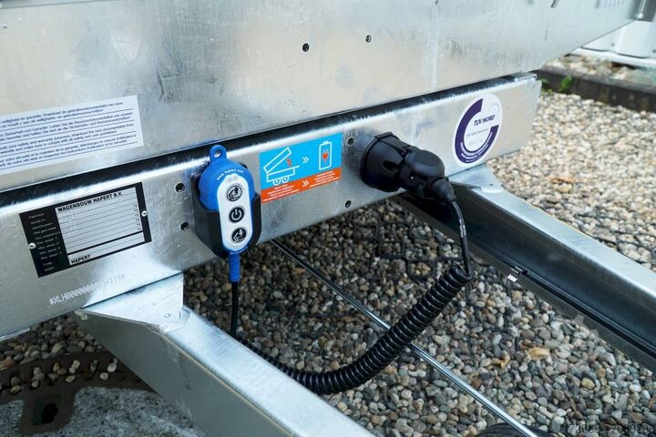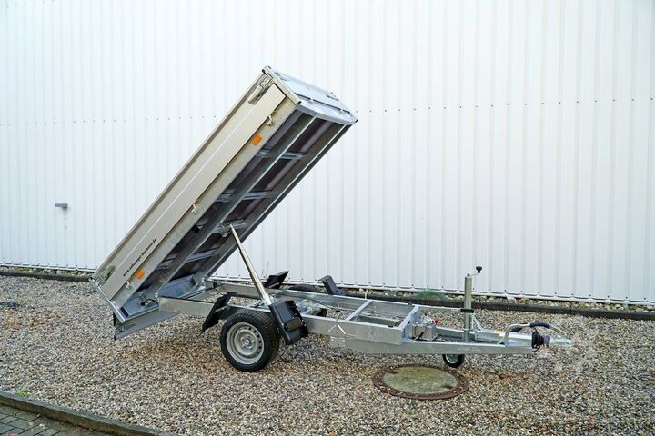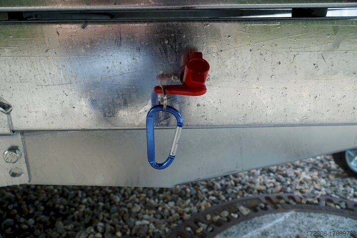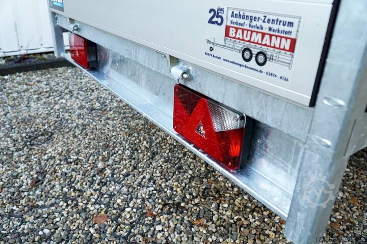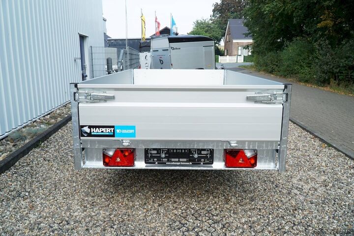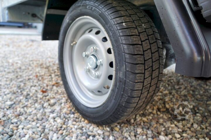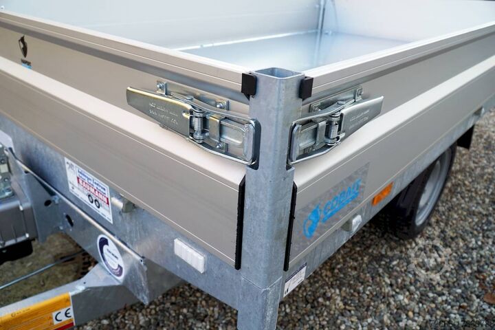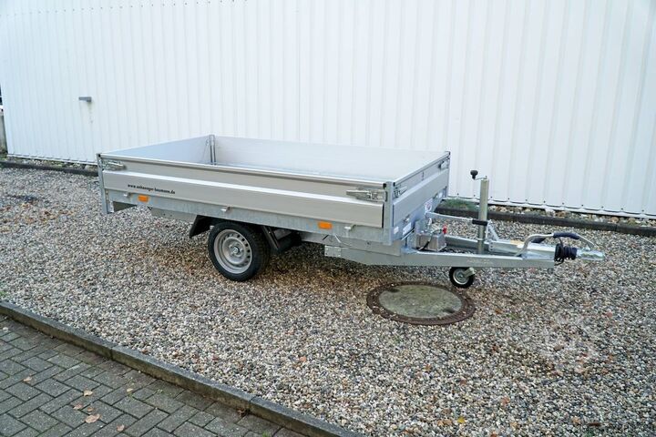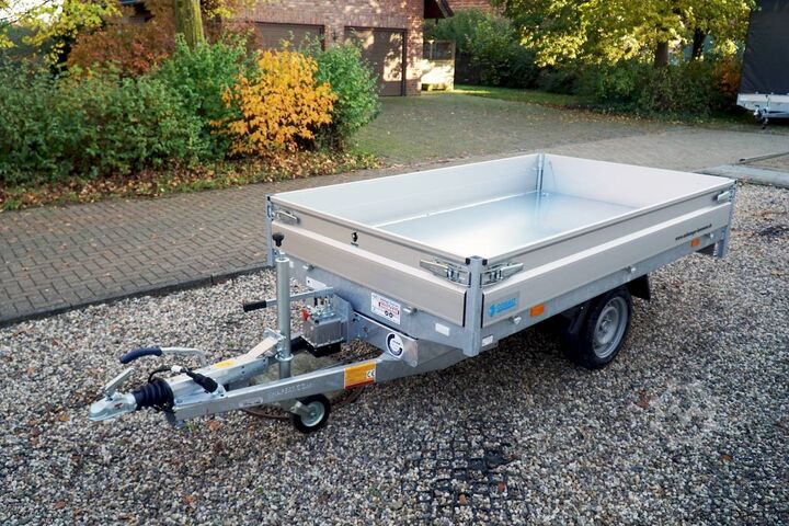 Hydraulics, automatic reverse drive, hot-dip galvanizing, roof window, * IMMEDIATELY AVAILABLE * Technical data: - Type: New vehicle with 2 years TÜV from first registration - Availability: Immediately available!!! - TÜV: 2 years - Floor: Multiplex screen printing covered with sheet steel - Gross vehicle weight: 1,500 kg - Unladen weight: 479 kg - Load capacity: 1,021 kg - Interior dimensions: 260 x 150 x 30 cm (L x W x H) - Exterior dimensions: 386 x 156 x 96 cm (L x W x H) - Loading sill height: 66 cm - Tyres: 195/50R13C steel rim - Brake: yes - Support wheel: yes, automatic - Incl. vehicle documents (letter) - 100 km/h: at extra cost Standard equipment: - Designed dropside hinges for very easy attachment of a cargo net - Aluminium dropside walls with robust built-in locks - Anodized double-walled aluminium dropside walls - All dropside walls can be folded all round - All dropside walls removable - Steel plate on wooden floor in Finnish quality - Very stable welded steel frame - Frame completely hot-dip galvanized - Many options available hot-dip galvanized - many stable cross members therefore high point load - additional longitudinal struts continuously welded in - 6 lashing brackets recessed inside the side edge TÜV certified to 1000DaN / kg - lashing hooks welded to the bottom of the frame - maintenance-free rubber spring axles from BPW - automatic reverse drive - BPW overrun hitch and parking brake - stable eccentric locks - very stable SCREWED V-drawbar REINFORCED (Version2019) - 13-pin plug - reversing lights - large reversing light - large rear view mirror - large rear view mirror - large rear view mirror - large rear view mirror. plug - reversing light - large safety lighting - integrated rear fog light - lighting recessed in the rear frame - support wheel in the middle Special equipment included in the price: - E-pump for electric tipping - Detachable remote control with spiral cable and battery status indicator Accessories optionally available / retrofittable: - High front grille, 50 cm - Tarpaulin + bows in various heights, - Supports, grille, frame, - Tailgate in various heights, - Tailgate in various heights. Supports, grids, side wall attachments, nets etc. New vehicle with warranty and TÜV. We are happy to offer you suitable financing !, Descriptions and pictures are protected by copyright !!! Over 800 trailers immediately available for you! We are for over 30 years Brian James / Humbaur / Hapert / Unsinn / Cheval Liberte / Koch / Debon / Stedele / TPV / Tohaco / Vezeko / Variant / Vlemmix - specialized dealer & repair - workshop - delivery Germany-wide with surcharge possible! Anhänger Zentrum BAUMANN GmbH Dinxperloer Str. 389 46399 Bocholt - Errors, omissions and prior sale reserved -