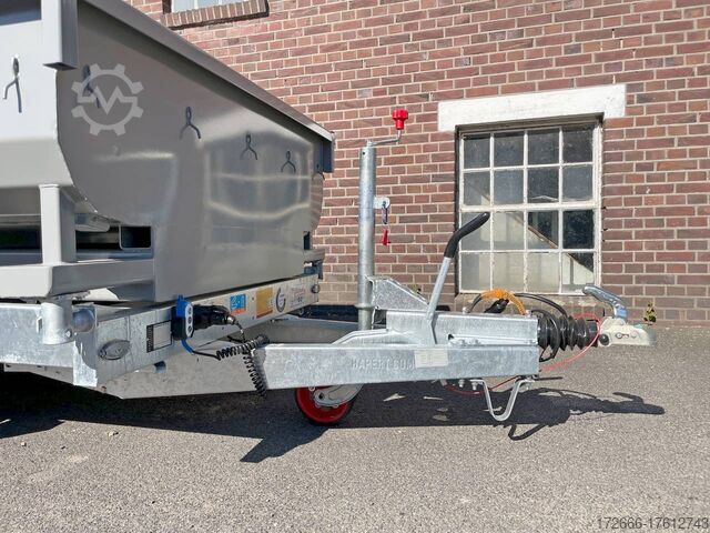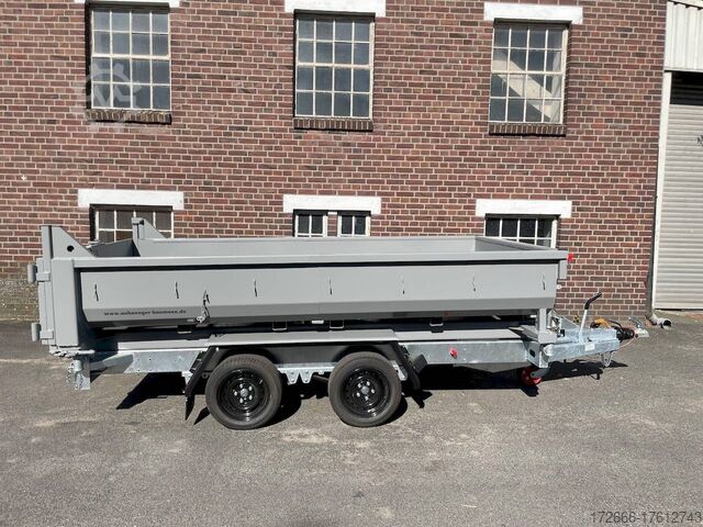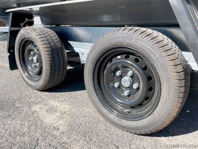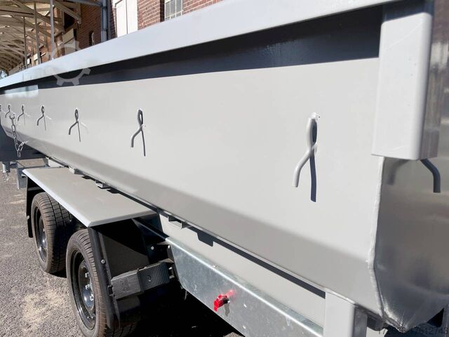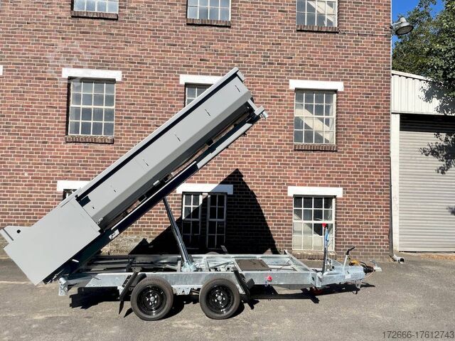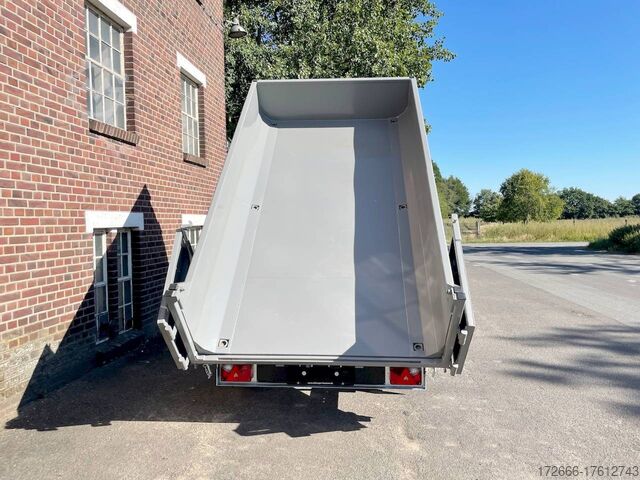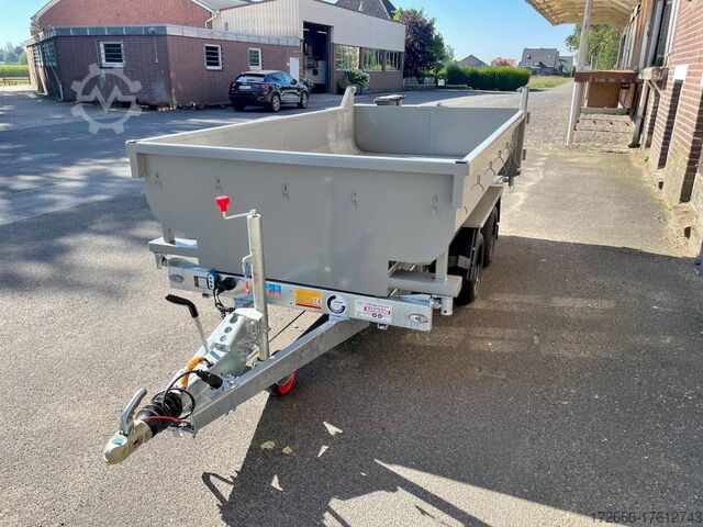 Hydraulics, automatic reverse drive, hot-dip galvanizing, roof window, electric pump/ steel skip, * IMMEDIATELY AVAILABLE * incl. electric pump/ steel skip Technical data: - Type: New vehicle - TÜV: New/2 years - Availability: IMMEDIATELY! - Gross vehicle weight: 3,500 kg - Unladen weight: 1,104 kg - Payload: 2,396 kg - Interior dimensions: 335 x 180 x 50 cm (L x W x H) - Overall exterior dimensions: 468 x 186 x 119 cm (L x W x H) - Loading sill height: 69 cm - Tires: 195/50R13C steel rim - Brake: yes - Support wheel: yes, automatic - 100km/h: at extra charge - Incl. vehicle papers: yes Vehicle superstructure: - Brake: yes - Number of axles: 2 - Floor: steel trough - Drop sides: steel drop sides - Drop side height: 50 cm - Drop sides foldable: rear drop side - Drop sides removable: No - Dropside hinges: 2 at the rear, welded - Removable corner stanchions: No - Locks: Eccentric locks - Swing tailgate: Yes - Number of pallet spaces: 4 - Multifunctional vehicle: No - Tipping / lowering function: Rear tipping - Hydraulic pump: Electric pump - Number of cylinder stages: 5-stage - Tipping angle (R/S): 50 - Battery charging function: via. Charging function battery: via charging socket with optional charger - Overrun device/brake: KNOTT - Frame/chassis: welded steel frame - Galvanization: hot-dip galvanized - Drawbar: V-drawbar, bolted, C-profile - Mudguards: plastic mudguards - Attachments/attachments: Optional, attachable - Ramp shaft: Prepared - Ramps/ramp flap: Optional - Ramp type: - - Ramp load: - - Drive-on angle: - - Supports:Optional, can be retrofitted - Lashing eyes:6 - Rear lighting:Incandescent, lamps recessed in rear frame - Side lighting: - Plug for lighting: 13-pin Vehicle documents: ZBII & COC documents Standard equipment: - Anodized double-walled aluminium drop sides - Drop sides can be folded to the side and rear - Removable drop sides - Full steel floor - Extremely robust - Very sturdy welded steel frame - Frame completely hot-dip galvanized hot-dip galvanized - many sturdy cross beams for high point loading - additional longitudinal struts welded in throughout - hand pump for manual tipping - lashing hooks welded to the bottom of the frame - automatic reverse drive - ALKO overrun device and parking brake - sturdy tension locks - very sturdy V-drawbar REINFORCED - 13-pin plug - reversing lights - large reversing lights plug - reversing lights - large safety lighting - integrated rear fog light - lighting recessed in rear frame - automatic center support wheel - registration papers: ZBII and COC papers Accessories can be retrofitted - please enquire: - 100km/h approval with shock absorbers - hydraulic pump for cordless screwdriver operation - side wall attachment - corrugated grid attachment 60cm - closed sheet metal attachment 60cm - spare wheel - storage box - rear supports - ramps - flat tarpaulin - net hooks - additional lashing eyes - slotted-hole rails for tension belts & locking beams - bar strip with rubber coating for tension belts & locking beams - reversing lights - lashing straps - and much more. New vehicle with warranty and TÜV. We are happy to offer you suitable financing !, Descriptions and pictures are protected by copyright !!! Over 800 trailers immediately available for you! We are for over 30 years Brian James / Humbaur / Hapert / Unsinn / Cheval Liberte / Koch / Debon / Stedele / TPV / Tohaco / Vezeko / Variant / Vlemmix - specialized dealer & repair - workshop - delivery Germany-wide with surcharge po