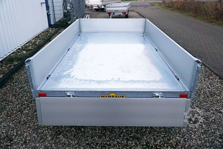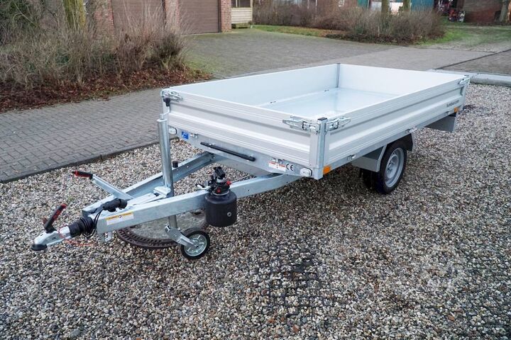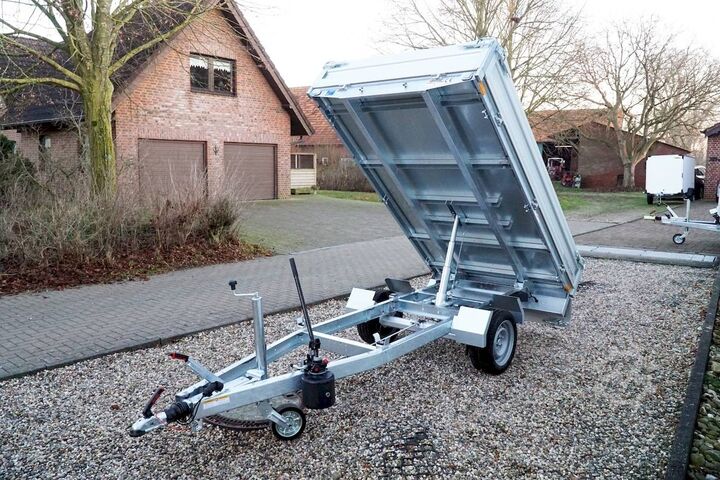 Hydraulics, automatic reverse drive, hot-dip galvanizing, roof window, hand pump / solid steel floor / cordless screwdriver pump, * IMMEDIATELY AVAILABLE * incl. hand pump / solid steel floor / cordless screwdriver pump Technical data: - Type: New vehicle - TÜV: New/2 years - Availability: IMMEDIATELY! - Gross vehicle weight: 1,500 kg - Unladen weight: 475 kg - Payload: 1,025 kg - Interior dimensions: 268 x 150 x 30 cm (L x W x H) - Overall exterior dimensions: 413 x 164 x 98 cm (L x W x H) - Loading sill height: 67 cm - Tires: 195/50R13C steel rim - Brake: yes - Support wheel: yes, automatic - 100 km/h: at extra charge - incl. vehicle documents Vehicle documents Vehicle superstructure: - Floor: solid steel floor, solidly reinforced - Side walls: anodized aluminium double-walled, 4x foldable & removable - Side wall height: 30cm - Chassis: high loader, ALKO rubber spring axle - Tipping function: yes, backwards - Hydraulics: hand pump & tiltable with cordless screwdriver - Tipping angle: approx. 45 - Steps hydraulic cylinder: 3 steps - Overrun device & brake: ALKO - Frame/chassis: welded hot-dip galvanized steel frame - Attachment: at extra charge - Lashing eyes: 4 pieces in the floor (800kg/daN) - Supports: at extra charge - Ramps: at extra charge Standard equipment: - Anodized double-walled aluminium drop sides - Drop sides can be folded to the side and rear - Removable drop sides - Full steel floor - Extremely robust - Very sturdy welded steel frame - Frame completely hot-dip galvanized - Many options available hot-dip galvanized - many sturdy cross beams for high point loading - additional longitudinal struts welded in throughout - hand pump for manual tipping - lashing hooks welded to the bottom of the frame - automatic reverse drive - ALKO overrun device and parking brake - sturdy tension locks - very sturdy V-drawbar REINFORCED - 13-pin plug - reversing lights - large reversing light - large rear lights - large rear lights - large rear lights. plug - reversing lights - large safety lighting - integrated rear fog light - lighting recessed in rear frame - automatic center support wheel - registration papers: ZBII and COC papers Optional equipment included in the price: - FLEXePUMP (tipping with cordless screwdriver) - hand pump and cordless screwdriver pump can be retrofitted in one accessory - please enquire: - 100km/h approval with shock absorbers - hydraulic pump for cordless screwdriver operation - side wall attachment - corrugated grid attachment 60cm - closed sheet metal attachment 60cm - spare wheel - storage box - rear supports - ramps - flat tarpaulin - net hooks - additional lashing eyes - slotted-hole rails for tension belts & locking beams - bar strip with rubber coating for tension belts & locking beams - reversing lights - lashing straps - and much more. New vehicle with warranty and TÜV. We are happy to offer you suitable financing !, Descriptions and pictures are protected by copyright !!! Over 800 trailers immediately available for you! We are for over 30 years Brian James / Humbaur / Hapert / Unsinn / Cheval Liberte / Koch / Debon / Stedele / TPV / Tohaco / Vezeko / Variant / Vlemmix - specialized dealer & repair - workshop - delivery Germany-wide with surcharge possible! Anhänger Zentrum BAUMANN GmbH Dinxperloer Str. 389 46399 Bocholt - Errors, omissions and prior sale excepted -