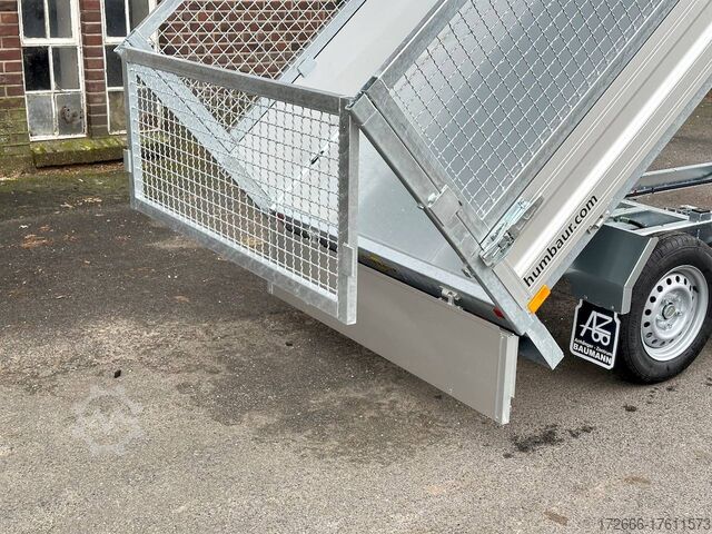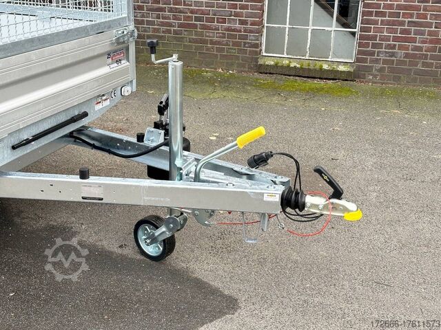 Hydraulics, automatic reverse drive, hot-dip galvanizing, roof window, grid attachment / hand pump / solid steel floor / cordless screwdriver pump, * IMMEDIATELY AVAILABLE * incl. grid attachment / hand pump / solid steel floor / cordless screwdriver pump Technical data: - Type: New vehicle - TÜV: New/2 years - Availability: IMMEDIATELY! - Gross vehicle weight: 2,000 kg - Unladen weight: 530 kg - Payload: 1,470 kg - Interior dimensions: 268 x 150 x 90 cm (L x W x H) - Overall exterior dimensions: 416 x 164 x 158 cm (L x W x H) - Loading sill height: 68 cm - Tyres: 155/80R13 steel rim - Brake: yes - Support wheel: yes, automatic - 100 km/h: at extra charge - incl. vehicle documents Vehicle superstructure: - incl. Vehicle documents Vehicle superstructure: - Floor: solid steel floor, solidly reinforced - Side walls: anodized aluminium double-walled, 4x folding & removable - Side wall height: 30cm - Chassis: high loader, ALKO rubber spring axle - Tipping function: yes, backwards - Hydraulics: hand pump & cordless screwdriver pump Tipping - Tipping angle: approx. 45 - Steps hydraulic cylinder: 3 steps - Overrun device & brake: ALKO - Frame/chassis: welded hot-dip galvanized steel frame - Attachment: with grid attachment 60cm - Lashing eyes: 6 pieces in the floor (800kg/daN) - Supports: at extra cost - Ramps: at extra cost Standard equipment: - Anodized double-walled aluminium drop sides - Drop sides can be folded to the side and rear - Removable drop sides - Full steel floor - Extremely robust - Very sturdy welded steel frame - Frame completely hot-dip galvanized - Many options available hot-dip galvanized - many sturdy cross beams for high point loading - additional longitudinal struts welded in throughout - hand pump for manual tipping - lashing hooks welded to the bottom of the frame - automatic reverse drive - ALKO overrun device and parking brake - sturdy tension locks - very sturdy V-drawbar REINFORCED - 13-pin plug - reversing lights - large reversing lights plug - reversing lights - large safety lighting - integrated rear fog light - lighting recessed in rear frame - automatic center support wheel - registration papers: ZBII and COC papers Optional equipment included in the price: - FLEXePUMP (tipping with cordless screwdriver) - Hand pump and cordless screwdriver pump in one - Corrugated grille attachment 60cm Accessories can be retrofitted - please enquire: - 100km/h approval with shock absorbers - side wall attachment - sheet metal attachment closed 60cm - spare wheel - storage box - rear supports - ramps - flat tarpaulin - net hooks - additional lashing eyes - slotted-hole rails for tension belts & locking beams - bar strip with rubber coating for tension belts & locking beams - reversing lights - lashing straps - and much more. New vehicle with warranty and TÜV. We are happy to offer you suitable financing !, Descriptions and pictures are protected by copyright !!! Over 800 trailers immediately available for you! We are for over 30 years Brian James / Humbaur / Hapert / Unsinn / Cheval Liberte / Koch / Debon / Stedele / TPV / Tohaco / Vezeko / Variant / Vlemmix - specialized dealer & repair - workshop - delivery Germany-wide with surcharge possible! Anhänger Zentrum BAUMANN GmbH Dinxperloer Str. 389 46399 Bocholt - Errors, omissions and prior sale excepted -