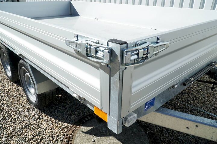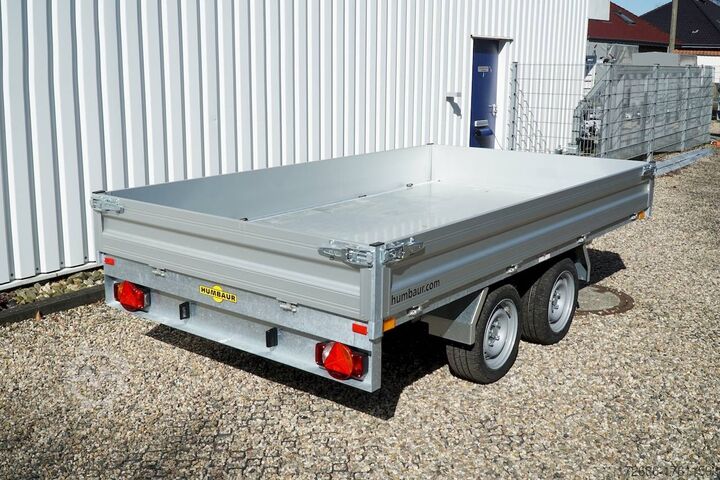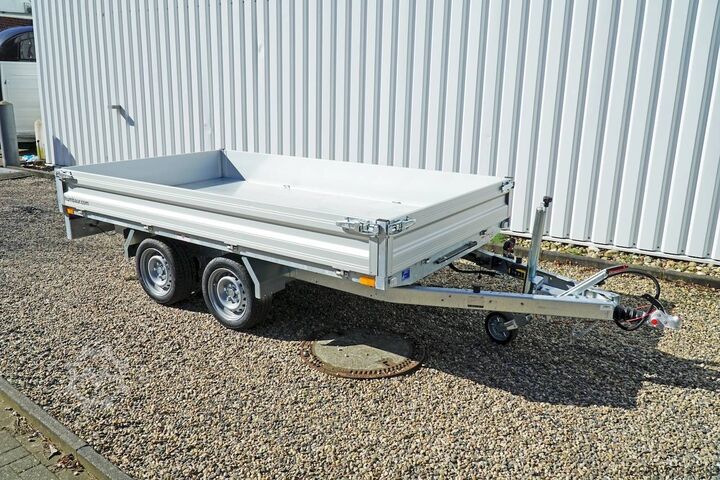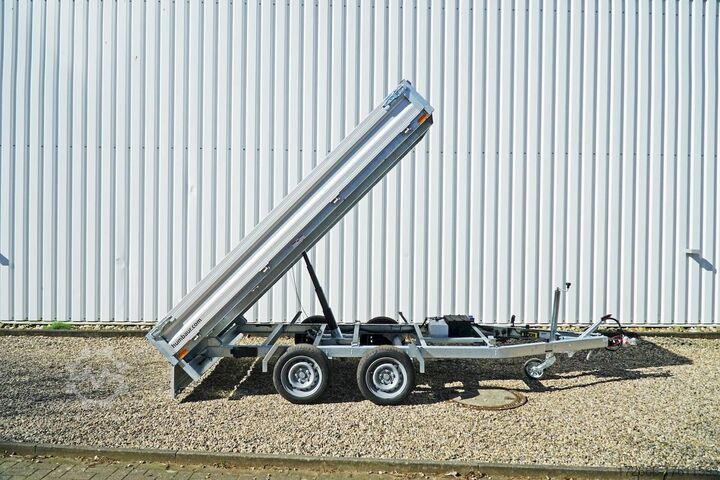 Hydraulics, automatic reverse drive, hot-dip galvanizing, roof window, electric & emergency hand pump / full steel floor, * IMMEDIATELY AVAILABLE * incl. electric & emergency hand pump / full steel floor Technical data: - Type: New vehicle - TÜV: New/2 years - Availability: IMMEDIATELY! - Gross vehicle weight: 3,000 kg - Unladen weight: 735 kg - Payload: 2,265 kg - Interior dimensions: 314 x 175 x 30 cm (L x W x H) - Overall exterior dimensions: 451 x 189 x 97 cm (L x W x H) - Loading sill height: 67 cm - Tires: 195/50R13C steel rim - Brake: yes - Support wheel: yes, automatic - 100 km/h: at extra charge - incl. vehicle documents Vehicle documents Vehicle superstructure: - Floor: solid steel floor, solidly reinforced - Side walls: anodized aluminium double-walled, 4x folding & removable - Side wall height: 30cm - Chassis: high loader, ALKO rubber spring axle - Tipping function: yes, backwards - Hydraulics: electric + emergency hand pump tipping - Tipping angle: approx. 45 - Steps hydraulic cylinder: 4 steps - Overrun device & brake: ALKO - Frame/chassis: Welded hot-dip galvanized steel frame - Attachment: at extra charge - Lashing eyes: 8 pieces in the floor (800kg/daN) - Supports: at extra charge - Ramps: at extra charge Standard equipment: - Anodized double-walled aluminium drop sides - Drop sides can be folded to the side and rear - Removable drop sides - Full steel floor - Extremely robust - Very sturdy welded steel frame - Frame completely hot-dip galvanized - Many options available hot-dip galvanized - many sturdy cross members for high point loading - additional longitudinal struts welded in throughout - lashing hooks welded to the bottom of the frame - automatic reverse drive - ALKO overrun device and parking brake - sturdy tension locks - very sturdy V-drawbar REINFORCED - 13-pin plug - reversing lights - large reversing lights plug - reversing lights - generously dimensioned safety lighting - integrated rear fog light - lighting recessed in rear frame - automatic center support wheel - registration papers: ZBII and COC papers Optional equipment included in the price: - E-hydraulics for tipping with battery in the box and cover - Emergency hand pump Accessories can be retrofitted - please enquire: - 100km/h approval with shock absorbers - side wall attachment - corrugated grid attachment 60cm - sheet metal attachment closed 60cm - spare wheel - storage box - rear supports - ramps - flat tarpaulin - net hooks - additional lashing eyes - slotted-hole rails for tension belts & locking beams - bar strip with rubber coating for tension belts & locking beams - reversing lights - lashing straps - and much more. New vehicle with warranty and TÜV. We are happy to offer you suitable financing !, Descriptions and pictures are protected by copyright !!! Over 800 trailers immediately available for you! We are for over 30 years Brian James / Humbaur / Hapert / Unsinn / Cheval Liberte / Koch / Debon / Stedele / TPV / Tohaco / Vezeko / Variant / Vlemmix - specialized dealer & repair - workshop - delivery Germany-wide with surcharge possible! Anhänger Zentrum BAUMANN GmbH Dinxperloer Str. 389 46399 Bocholt - Errors, omissions and prior sale excepted -