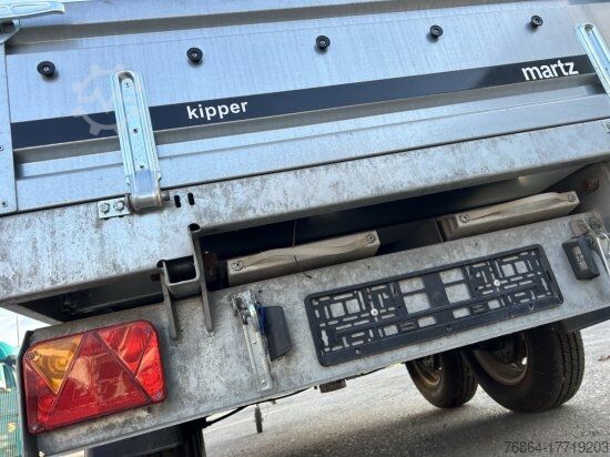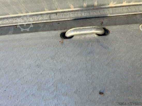 This tipper has a frame construction with a closed profile, which increases its stability. It uses a 5-stage cylinder which enables a larger tipping angle (up to 55°). All side walls can be opened and removed. The model also has a steel floor. | KIPPER 250/2 C S 2T Reversible tipper | Galvanized frame | Lockable storage shaft for 2 access ramps incl. ramps Ramps (L:243cm, W: 30cm) | Loading area dimensions: L: 2.53m W: 1.52m Dropside height: 0.40m Loading height 0.70m | 4 lashing rings (2 left, 2 right) recessed in the floor | Knott axle with drum brake | Leaf suspension | Operating voltage 12V | Spindle parking brake | Errors excepted.
