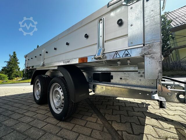 New series of rear tippers! Tandem axle, braked rear tipper high-loader with aluminum drop sides, foldable and removable on all sides, steel sheet floor, welded, hot-dip galvanized steel frame, with hydraulic hand pump, jockey wheel, 6 lashing rings as standard.