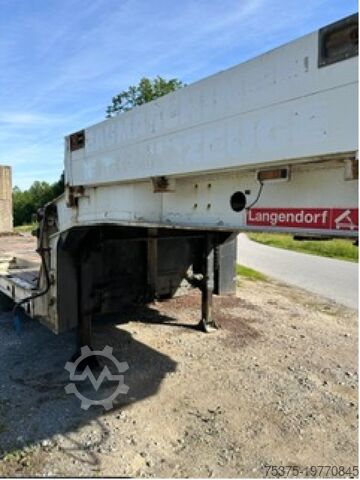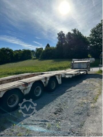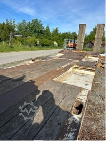 Additional steering / maneuvering steering with radio remote control, platform side walls with storage box, telescopic widening up to 3,200 mm, 2 pairs of wheel loader recesses in the loading bed (220 mm deep) for CAT 966, wheelbase from 3,200 mm to 3,700 mm, loading ramps 2,950+1,700 x 700 mm wide,