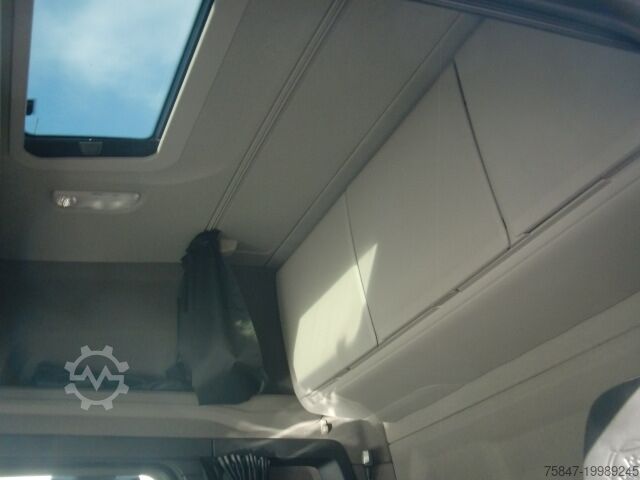ABS, блокировка дифференциала, бортовой компьютер, дополнительные фары, кондиционер, круиз-контроль, навигационная система, отопитель стояночный, сажевый фильтр, система контроля тяги, спальное место в кабине, спойлер