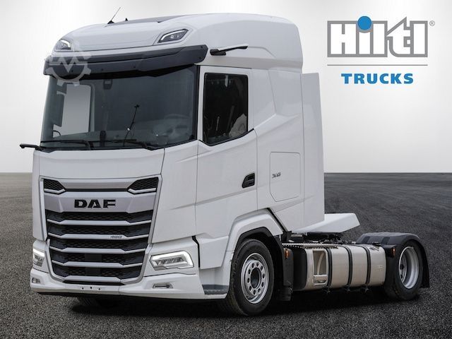 permissible total weight: 18000kg, fabric seats, interior color anthracite, air suspension, 3 x airbag, lift axle, intarder, tachograph, fifth wheel coupling, stationary air conditioning, comfort seats, air-suspended driver's seat, electric driver's seat, seat heating, LED headlights, radio, leather steering wheel, power steering, electric windows, roof hatch, immobilizer, central locking, sun visor, comfort package, all-season tires, cool box, driver's package, high beam assistant, light sensor, front camera, digital exterior mirrors, XG driver's cab, mechanical cab suspension, passenger seat: cinema with fabric cover, Adaptive Cruise Control with FCW and AEBS-3, lane change warning system Goodyear RR, not applicable, emission class Euro 6 OBD-E engine H6, fuel B7, automated transmission, TraXon, 12 gears, rear axle ratio 2.05, wheelbase 4.00 m/rear overhang 0.87 m Standard component layout Fuel tanks left and right PACCAR Connect Warranty Plus powertrain-3 years-500,000 km Sun visor outside LED headlights and fog lights Windscreen with sun protection film Laminated glass with sun protection film No front mirror DAF Corner View Side fenders, both sides foldable Without side paneling Lower cab step Crystal White Color side fenders: Crystal White Driver's seat: Luxury Air Armrests on both sides of the driver's seat Driver's seat, swivel base Storage compartment with drawer in the center console Refrigerator and drawer Preparation for compressed air device Xtra Comfort Mattress for lower bunk Curtains with partition curtain Automatic cab climate control Parking air conditioning, integrated Roof hatch with electric control ECAS remote control with extended functions FMS connector, extended and prepared Digital tachograph, VDO 1C, version G2V2 DAF Infotainment Luxury Plus, Luxury loudspeakers Antennas: Radio, 2x mobile, GNSS Extra: CB Front: 8.00 t, air suspension, 161 N front axle 1, 8,000 kg, load index 156 Front air suspension: low