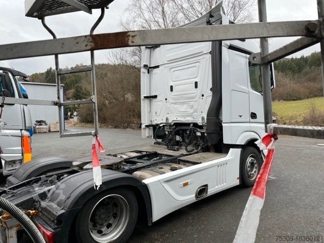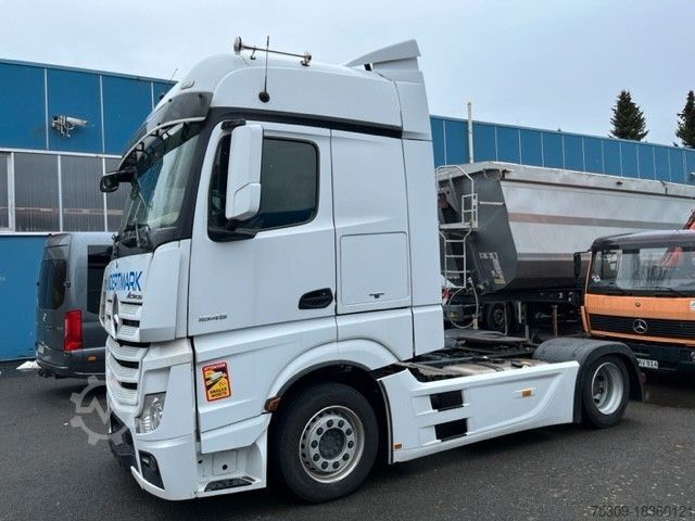 EURO 6 emissions standard, axle configuration: 4x2, Actros 4, electrically adjustable and heated exterior mirrors, rear axle differential lock, steel air reservoir, medium air unit, cab: L BigSpace, cab: steel-sprung, comfort, suspension: air / air, electric windows, tinted windscreen, 100 A generator, 12-speed gearbox - type: G 211-12, urea tank (AdBlue): 60 ltr, Rear axle disk wheel 440, Body/bodywork: Chassis, comfort locking system, communication interface, radiator blind, power steering pump controlled, lift device trailing axle, 2-stage air compressor, engine 12.8 ltr. - 330 kW R6 diesel (OM 471), engine brake, engine compartment encapsulation, trailing axle with single tyres, ramp mirror, residual heat utilization, front and rear axle disc brakes, seats in cab: passenger function seat, seats in cab: Driver's seat backrest can be folded down, Voltage converter 24V / 12V 10 A, Front splash guard, Front axle stabilizer, Additional stabilizer, Rear axle / trailing axle, External left-hand storage flap, 24V cab socket, Tachograph / EC tachograph, Door extension for cab, Aerodynamically shaped underbody panelling, Front underride guard, Preparation for toll collection, Cranked front axle, Regulated water pump, Perm. Gross vehicle weight 18.00 t, Auxiliary heating (water)