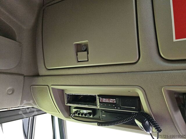 Number of axles: 2, Configuration: 4x2, Payload: 11,023 kg, Unladen weight: 7,977 kg, Gross weight: 19,000 kg, Total tank capacity: 1,196 liters, Second diesel tank, Trailer load (unbraked): 750 kg, Fifth wheel height: 117 cm, Fifth wheel: Fixed, Number of differential locks: 1, Suspension type: Air suspension, Cab type: Sleeper cab, Cruise control, Tachograph (control device), Digital tachograph, Air conditioning, Parking heater, Electric windows, Electric mirrors, Radio/cassette, Color: White, Heated mirrors, Lighting type: Xenon lamps, Speed limiter, Lane departure assist, Climate control, Seat heating, Bluetooth, Blind spot sensor, Engine power: 338 kW (453 hp), Fuel: Natural gas, Euro: 6, Transmission type: AS-Tronic, Gearbox manufacturer: ZF, Speed limiter, Gears: 12, Additional brake system, Retarder brand: Intarder, Power steering, ABS, ASR, Starter battery, Number of seats: 2, Seating arrangement: 1+1, Seat upholstery: Fabric, Seat adjustment: Manual