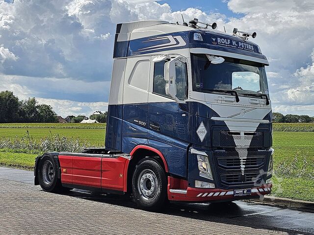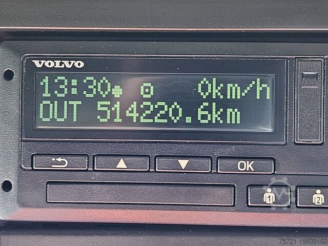 Number of axles: 2, Configuration: 4x2, Unladen weight: 8,113 kg, Gross weight: 18,000 kg, Total tank capacity: 1,055 liters, 2nd diesel tank, fifth wheel height: 110 cm, Fifth wheel: fixed, Number of locks: 1, Suspension type: air suspension, Cabin type: Globetrotter, Cruise control, tachograph (control device), digital tachograph, air conditioning, parking air conditioning, auxiliary heater, electric windows, electric mirrors, radio/cassette, color: multicolor, heated mirrors, lighting type: halogen lamp, speed limiter, lane keeping assist, climate control, heated seats, Bluetooth, flashing lights, engine power: 375 kW (503 Hp), fuel type: diesel, Euro: 6, transmission type: I-Shift, transmission make: Volvo, speed limiter, gears: 12, power steering, ABS, ASR, starter battery, central locking, seat configuration: 1+1, seat material: fabric, seat adjustment: manual