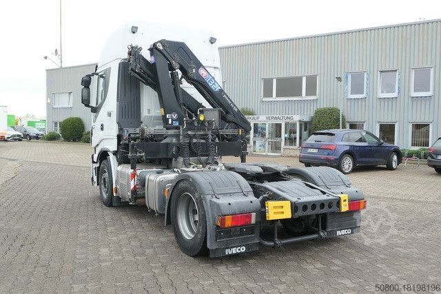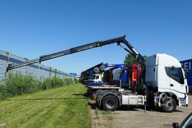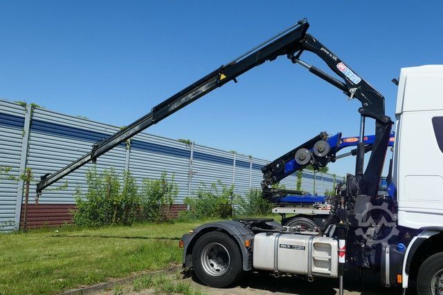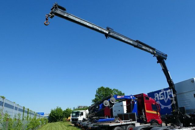 Тип крана HMF: 1320K3, радиоуправление, двигатель Евро 6, ABS, ASR, круиз-контроль, моторный тормоз, коробка отбора мощности, блокировка заднего дифференциала, помощь при тяге, кондиционер, кондиционер на крыше, подогрев наружных зеркал и электропривод. регулируемый, электрический Стеклоподъемники в дверях водителя и пассажира, холодильник, многофункциональный руль, комфортное сиденье водителя на подвеске, 2 спальных места, гидр. Соединение для двухконтурного полуприцепа, пневматическая подвеска с устройством подъема и опускания HA, транспортное средство может быть покрыто рекламой и/или маркировкой