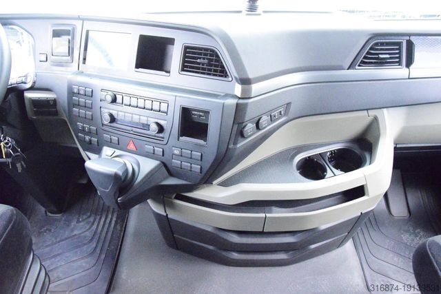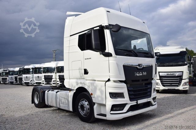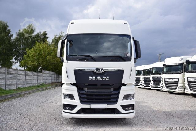 ID: 7907-907351 All our vehicles and the latest offers - Features MAN EfficientCruise 3. Large cab capacity with high roof GX. Battery, 12 V, 230 Ah, 2 units, maintenance free. Diesel engine MAN D2676 LFAI, 346 kW (470 hp) output, 2,400 Nm torque, Euro 6e. Gearbox MAN TipMatic 12.26 DD. Advanced Emergency Brake Assist (EBA). Driver comfort Air-conditioning system, Climatronic. Comfort driver?s seat, air-sprung, with lumbar support and shoulder adjustment. Co-driver's seat, not sprung, length and backrest adjustment. Bunk, top, with slatted support. Bunk, bottom, with slatted support. Auxiliary water heater 4 kW (night heater). Fridge and drawer, 1 unit, centre area, to rear. Technical specifications Tachograph, digital, with telecommunication (as per DSRC), CONTINENTAL. Anti-slip control (ASR). Lane Guard System (LGS). Front axle tyres - 315/70 R22.5. Rear axle tyres - 315/70 R22.5. JOST JSK 37 C 2" fifth-wheel coupling. Main wheelbase, 3,900 mm. Fuel tank capacity 580 l, left, alum. AdBlue tank capacity 80 l, left, plastic. Cap for AdBlue tank. Fuel tank capacity 580 l, right, alum. Maximum speed limiter, 82 km/h, electronic, engine speed regulation. Technology MMT infotainment system, Starter Basic. English additionally for display. MAN TeleMatics. Exterior Front headlights, LED. Daytime driving lights, LED. Fog lights, LED. Cornering light, LED. Roof spoiler, 600 mm adjustment range. Side flaps, left folding and right fixed.