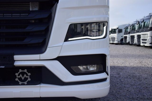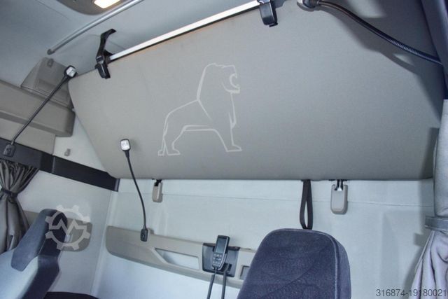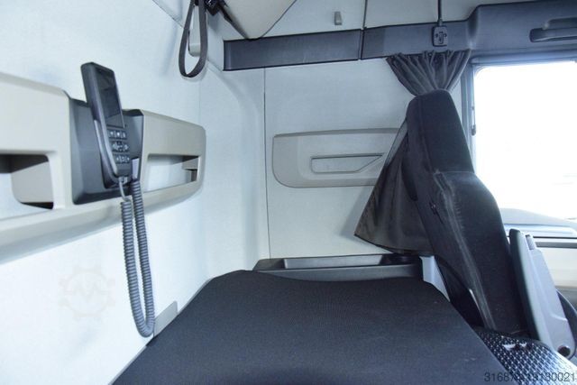 ID: 12434-907327 All our vehicles and the latest offers - Features MAN EfficientCruise 3 Large cab capacity with high roof GX Battery, 12 V, 230 Ah, 2 units, maintenance free Diesel engine MAN D2676 LFAI, 346 kW (470 hp) output, 2,400 Nm torque, Euro 6e MAN TipMatic 14.27 DD Advanced Emergency Brake Assist (EBA) Driver comfort Air-conditioning system, Climatronic Comfort driver?s seat, air-sprung, with lumbar support and shoulder adjustment Co-driver's seat, not sprung, length and backrest adjustment Bunk, top, with slatted support Bunk, bottom, with slatted support Auxiliary water heater 4 kW (night heater) Fridge and drawer, 1 unit, centre area, to rear Technical specifications Tachograph, digital, with telecommunication (as per DSRC), CONTINENTAL Tyres for front axle, Goodyear 315/70R22.5 KMAX S G2 Steering-Short haul TL Tyres for rear axle, Goodyear 315/70R22.5 KMAX D G2 Drive-Short haul TL Spare wheel, in accordance with configuration for front axle tyres Main wheelbase, 3,900 mm Axle ratio, i = 2.31 Fuel tank capacity 580 l, left Fuel tank capacity 580 l, right AdBlue tank capacity 80 l, left Road speed limiter, adjustable, limiter (engine speed regulation) Technology MMT infotainment system, Advanced Basic MAN TeleMatics Exterior Front headlights, LED Daytime driving lights, LED Fog lights, LED Contour lights, bulb, 2 units Roof spoiler, 600 mm adjustment range Side flaps, left folding and right fixed