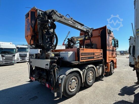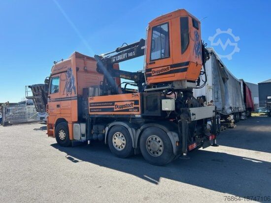 | Mercedes Actros 2654 6x4 tractor unit V8 | Tipping hydraulics with internal control | Teligent without clutch, EURO4, retarder | Air conditioning, refrigerator, auxiliary heating, seat heating | Cruise control, multifunction steering wheel | BLATT-LUFt, differential lock | Electric windows, electric mirrors | Tires: FA 385/65 R22.5 HA 315/80 R22.5 | Errors and advance sales excepted.