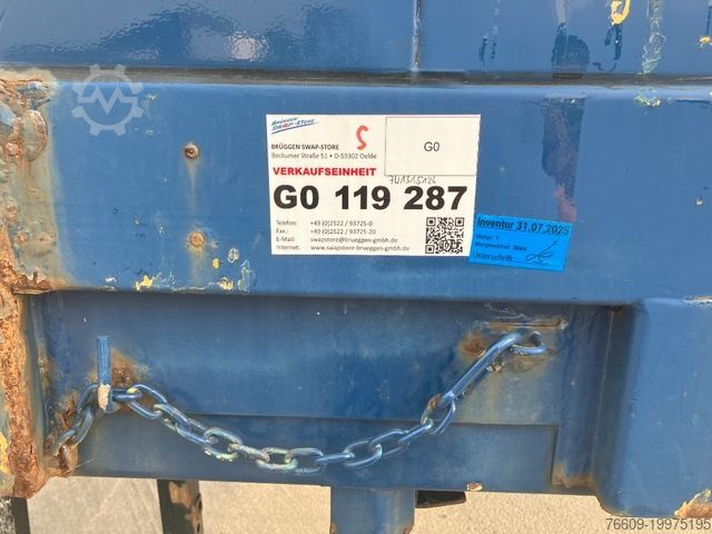 Delivery time upon request! Technically ready for operation, no further repairs required. Undercarriage shows signs of use, some surface rust present. Occasional paint chipping on parts of the swap body. Isolated rust on various components of the swap bridge. Deformations / bumps on components - see pictures. Multiple available!