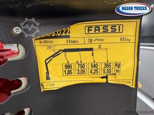Fixed platform with internal dimensions approx. 2.40 x 2.05 m, 40 cm high aluminium side panels, equipped with FASSI F26 crane with 1 hydraulic extension.