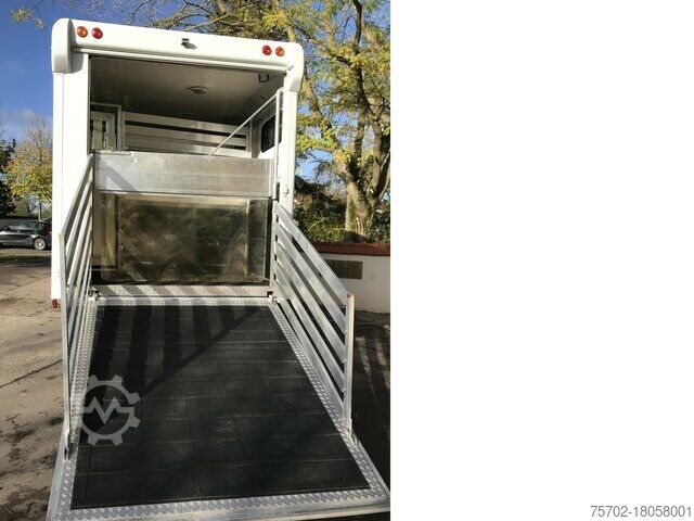Partition wall, green environmental badge (4), reversing camera, radio, power steering, HU/AU new, diesel manual gearbox Euro 5 green environmental badge automatic air conditioning auxiliary heating trailer coupling 3-seater 4 horses double cab ABS power steering ESP cruise control central locking upholstery fabric radio shower refrigerator microwave sink 2 beds 2 sleeping places storage compartments window in the horse compartment rear ramp ramp limiter reversing camera surveillance camera in the horse compartment stallion partition walls Steinsberger superstructure passage from the apartment into the horse compartment top payload permissible total weight 7.200 kg FOR US THE CONDITION AND THE FEEL OF THE CONSTRUCTION IS DECISIVE, THE PRICE TAKES SECOND PLACE If you have any further questions, please do not hesitate to contact Mr. Faller on the number. //*EXCHANGE, DEPOSIT OR RENTAL OF YOUR VEHICLE, AS WELL AS FINANCING POSSIBLE! All information without guarantee* You can find further offers on our homepage: The description and data given do not constitute a guarantee and are not binding. The contract of sale concluded at the dealership when the vehicle is purchased is binding. Subject to errors and prior sale!